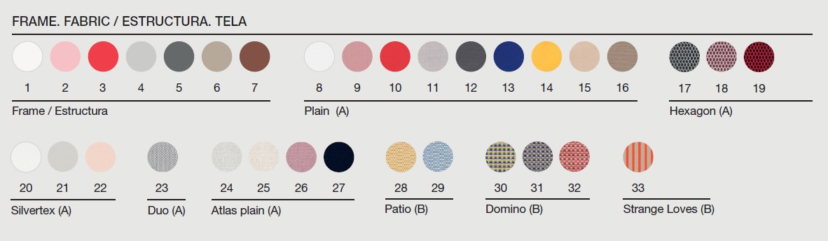 Διατίθεται σε μεγάλη ποικιλία χρωμάτων και υφασμάτων εξωτερικού χώρου.