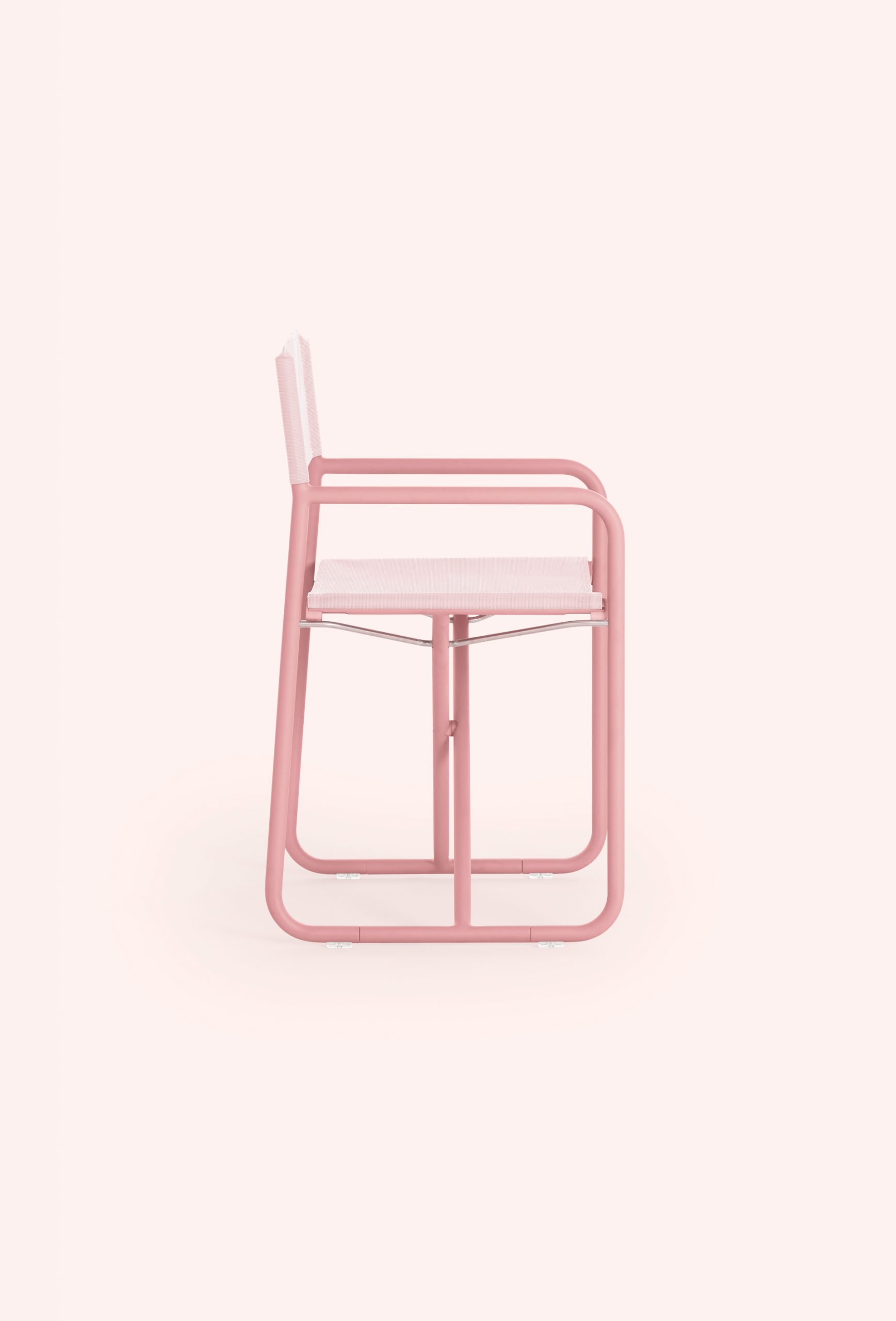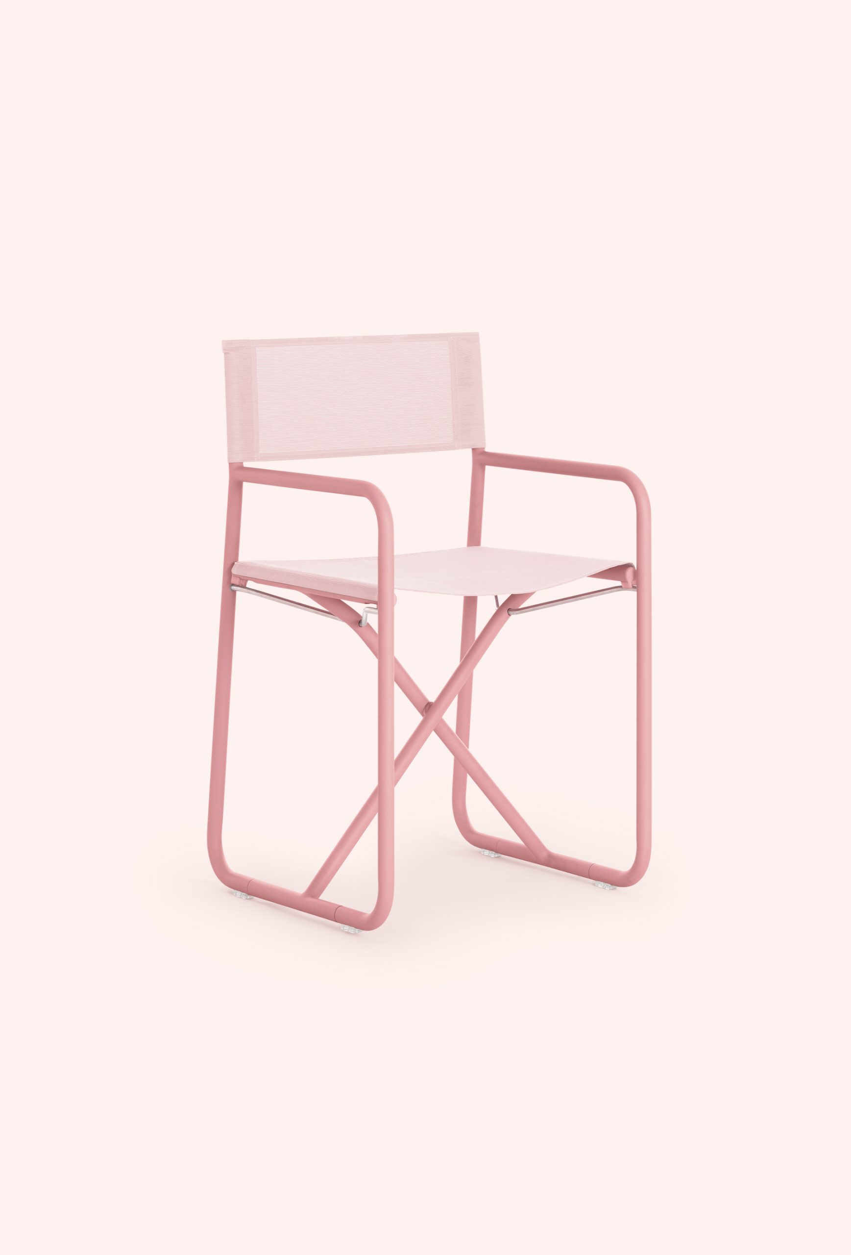 Η καρέκλα του σκηνοθέτη Trip επανερμηνεύει ένα κλασικό βιομηχανικό σχέδιο, μεταφέροντάς το στο σύμπαν του αλουμινίου, στην πιο κομψή εκδοχή του. Είναι πτυσσόμενη, ευέλικτη και εύκολη στη μεταφορά, μια καρέκλα μπαλαντέρ που ταιριάζει σε οποιονδήποτε εξωτερικό ή εσωτερικό χώρο, από εξοχική ή παραθαλάσσια κατοικία μέχρι διαμέρισμα πόλης.