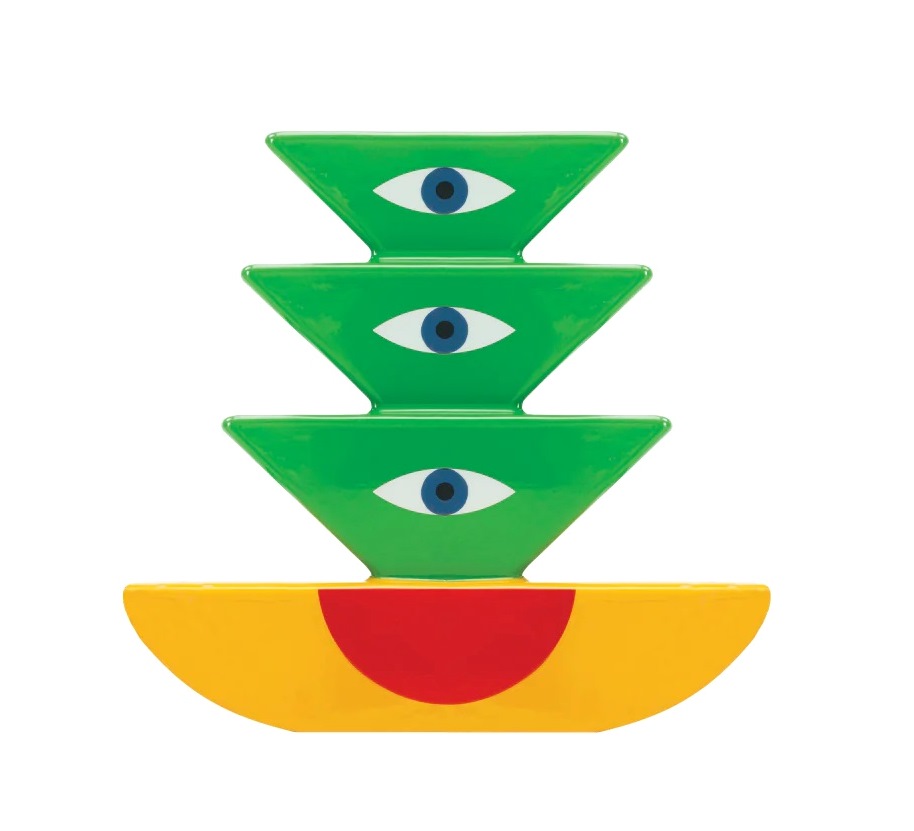 Συλλογή από κεραμικά βάζα με φιγούρες σε σχήμα ζώου, ανθρώπου ή φυτού, με έντονα, ζωηρά χρώματα, που μαζί αποτελούν ένα εικονικό τοπίο αντιπροσωπευτικό του φανταστικού οράματος του σχεδιαστή.