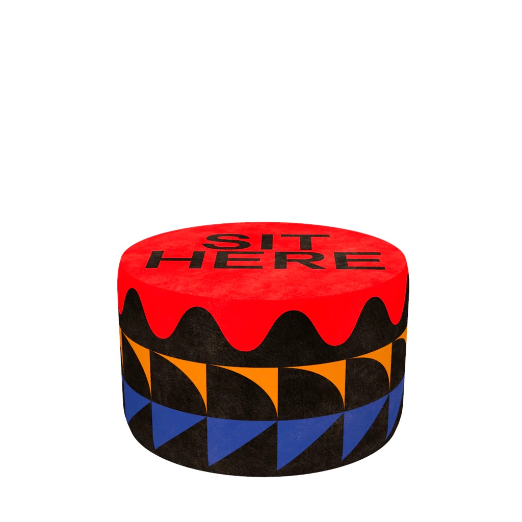 Συλλογή πουφ, σχεδιασμένα από τον Marco Oggian, που χαρακτηρίζονται από παιχνιδιάρικα μοτίβα και έντονα χρώματα. Επάνω στο κάθισμα θα βρείτε την επιγραφή «ΚΑΘΙΣΤΕ ΕΔΩ» που σας ενθαρρύνει να τα δοκιμάσετε και να απολαύσετε την άνεσή τους.