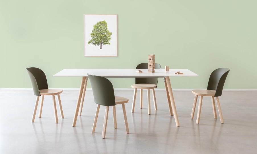 Η Alpina, η νέα καρέκλα των Βρετανών σχεδιαστών Edward Barber και Jay Osgerby, γεννήθηκε από την επιθυμία να δημιουργήσουν μια οικολογική καρέκλα που ανταποκρίνεται στις αρχές της Κυκλικής Οικονομίας. Η πλάτη είναι από βιοπροπυλένιο που προέρχεται 100% από οργανικά απόβλητα. Έχει εξαιρετικές ιδιότητες, είναι ανθεκτικό, επαναχρησιμοποιήσιμο και για την παραγωγή του υπάρχει μείωση του αποτυπώματος CO2 έως και 80%. Το κάθισμα και τα πόδια, από μασίφ ξύλο φλαμουριάς με πιστοποίηση FSC, είναι απολύτως φυσικά. Μπορούμε να πούμε ότι η Alpina είναι 100% ανακυκλώσιμη.