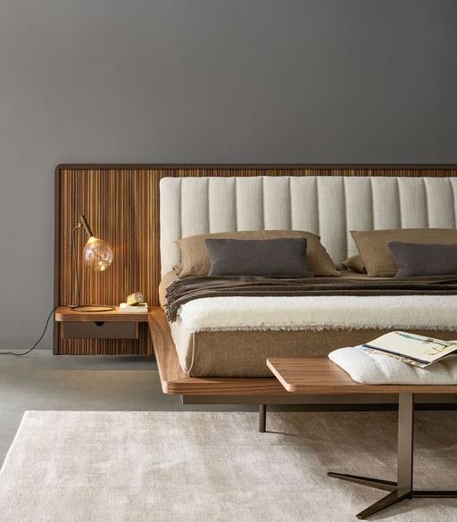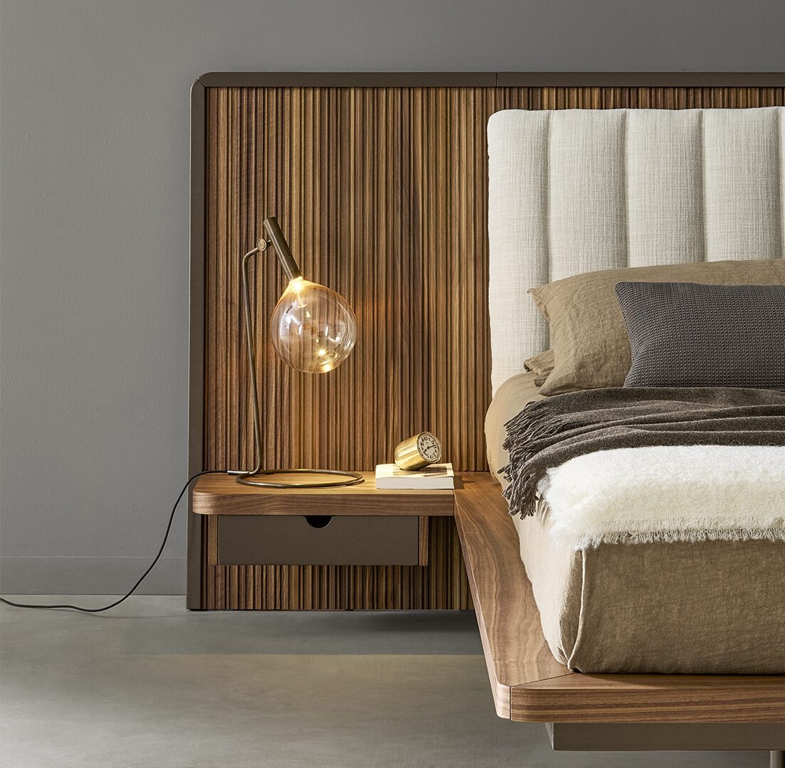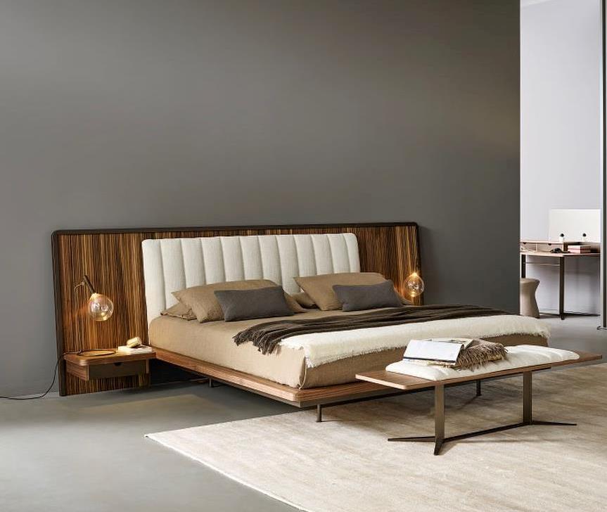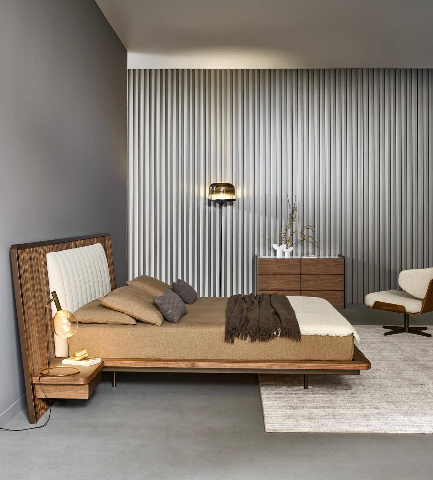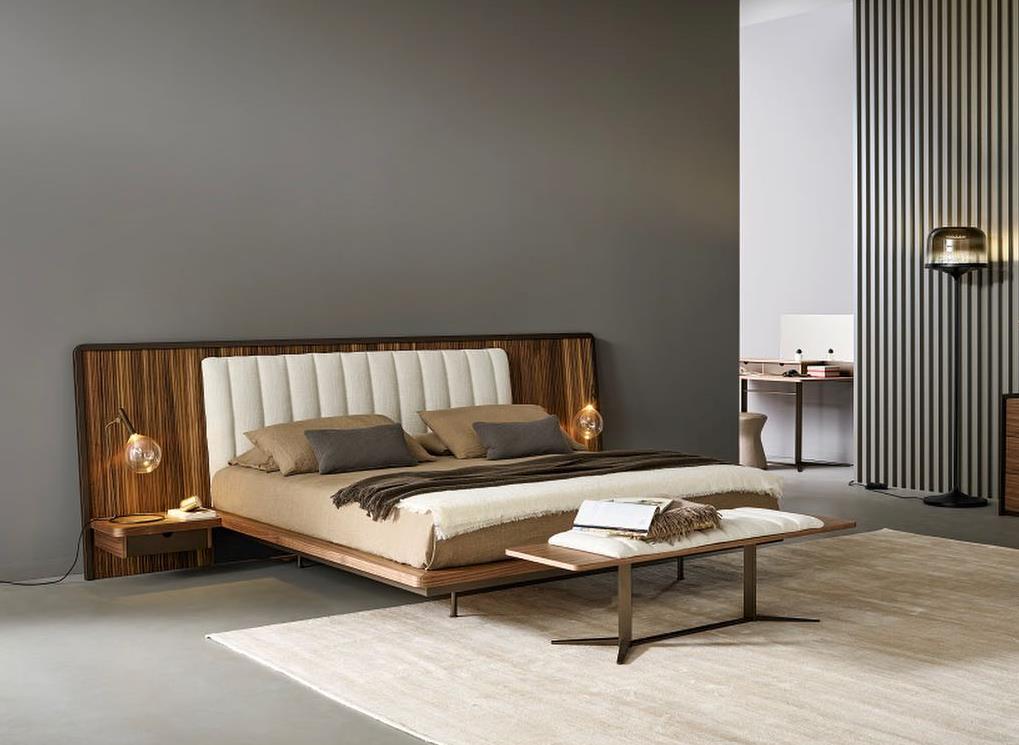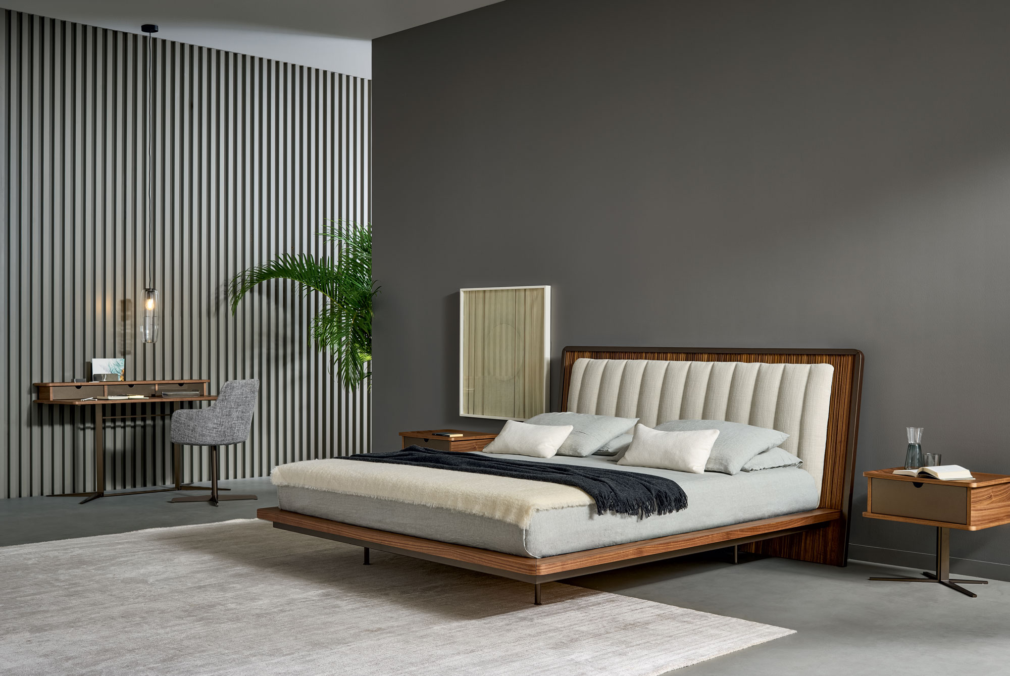 Χαρακτηριστικό γνώρισμα του διπλού κρεβατιού Nelson, είναι οι καθαρές γραμμές, η ακριβής ανάλυση σχημάτων και αναλογιών, και η σχολαστική φροντίδα στις λεπτομέρειες. Ξεχωρίζει για το επιβλητικό ξύλινο κεφαλάρι που περιβάλλει και πλαισιώνει ένα μικρότερο, πιο απαλό, με επένδυση. Η επίπεδη, λεπτή βάση του κρεβατιού, επίσης κατασκευασμένη από ξύλο, στηρίζεται σε λεπτά μεταλλικά πόδια, στοιχεία που κάνουν το Nelson να δείχνει σαν να αιωρείται, σαν να επιπλέει στην κρεβατοκάμαρα.