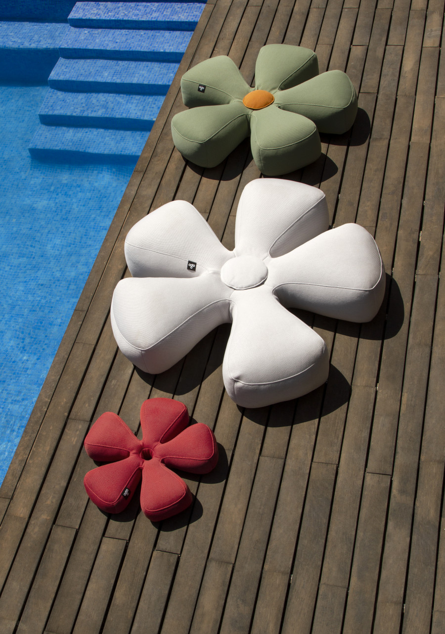 Flower Pouf, ένα λουλούδι με πέντε πέταλα και αφαιρούμενη «γύρη» για χρήση ως πρόσθετο μαξιλάρι στο πουφ. Ο σχεδιαστής του, ο Nacho Timón, για άλλη μια φορά δημιούργησε ένα κομμάτι που αντικατοπτρίζει τον φρέσκο και οικίο χαρακτήρα της Ogo. Το Flower κατασκευάζεται με ύφασμα 3D Agora, κατάλληλο για χρήση σε εξωτερικούς χώρους και μέσα στο νερό. Διατίθεται κατόπιν παραγγελίας σε τέσσερα μεγέθη και σε διάφορα χρώματα που επιτρέπουν την δημιουργία πολλών χρωματικών παιχνιδιών ανάλογα με τον χώρο που θα τοποθετηθούν. Επιπλέον, η γύρη/μαξιλάρι του Flower, διαθέσιμο στις διαστάσεις XL και XXL, μπορεί να παραγγελθεί σε διαφορετικό χρώμα, προσφέροντας ακόμα περισσότερους χρωματικούς συνδυασμούς.