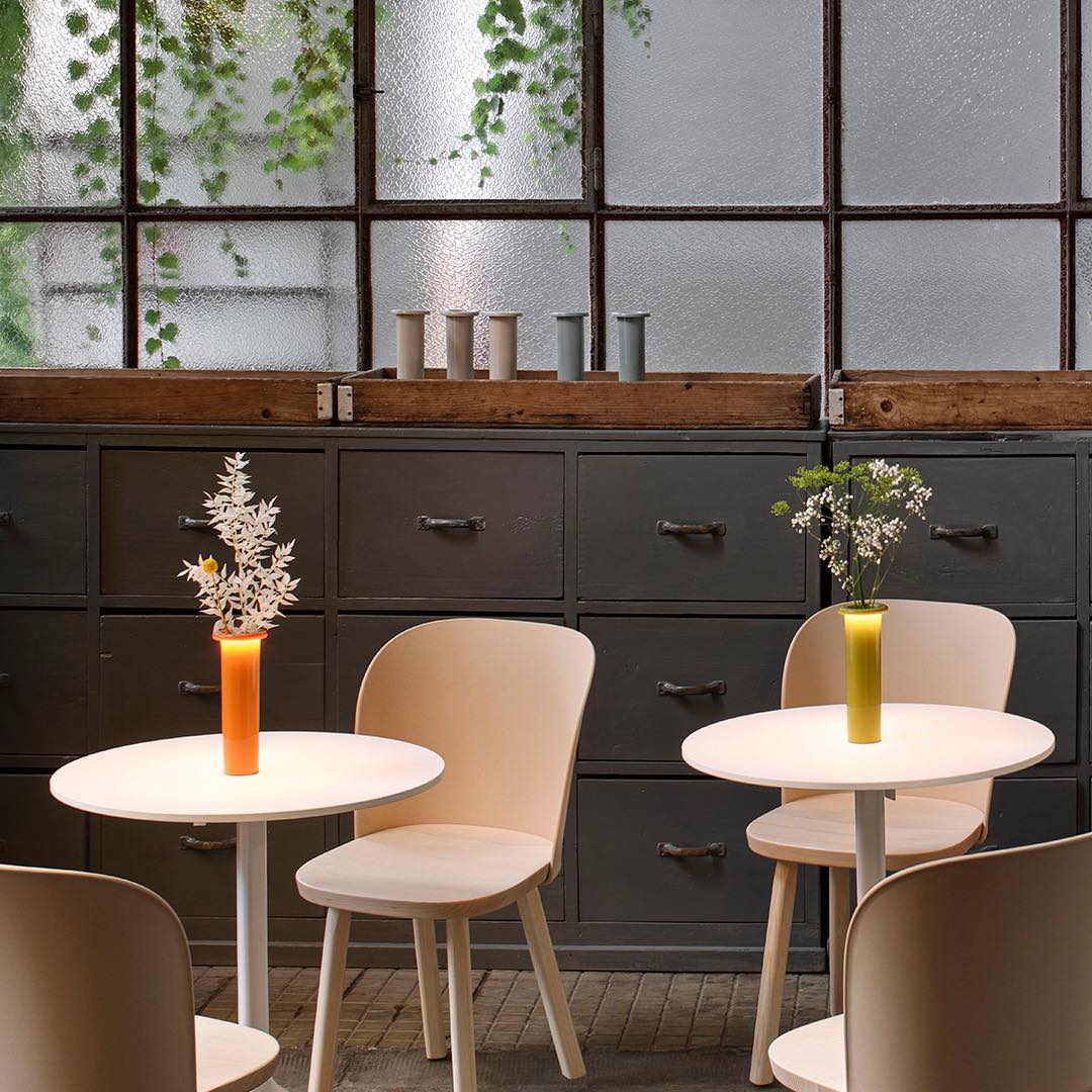 Το Bouquet είναι ένα φορητό και επαναφορτιζόμενο επιτραπέζιο φωτιστικό που λειτουργεί και ως βάζο για λουλούδια. Το concept είναι απλό, ένα μόνο στοιχείο συνδυάζει μαζί τη λειτουργία ενός βάζου και μιας λάμπας, δύο αντικείμενα που συναντάμε όλο και περισσότερο στα τραπέζια των εστιατορίων. Αυτό το ποιητικό αντικείμενο διατίθεται σε έξι μονόχρωμα χρώματα και αποτελείται από ένα κυλινδρικό στοιχείο που περικλείει τα ηλεκτρονικά και το LED και ένα αφαιρούμενο που λειτουργεί ως βάζο. Απλώς αλλάξτε το τελευταίο με άλλα διαφορετικών χρωμάτων για να δημιουργήσετε νέους διασκεδαστικούς συνδυασμούς. Το φως γίνεται το απροσδόκητο διακοσμητικό στοιχείο στις floral συνθέσεις. Δημιουργεί την τέλεια ατμόσφαιρα, η καθαρή αισθητική του Bouquet ταιριάζει τέλεια σε οποιοδήποτε χώρο.