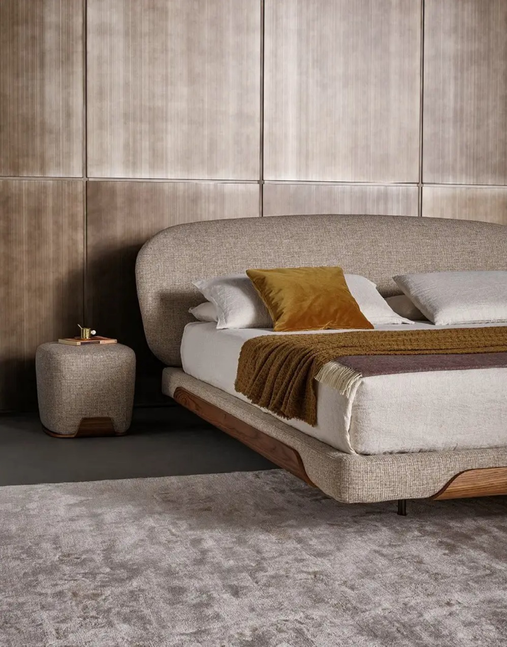 Το κρεβάτι της συλλογής Olos, σχεδιασμένο από τον Mauro Lipparini, είναι εμπνευσμένο από το σκανδιναβικό design και χάρη στη μοναδική αισθητική ευαισθησία και την αξιοσημείωτη αρμονία των όγκων του, σας επιτρέπει να απολαύσετε πλήρως αυτή την οικεία γαλήνη που απαιτεί η κρεβατοκάμαρα. Η σύγχρονη κομψότητα, η καθαρότητα των γραμμών και η έντονη προσωπικότητα είναι τα χαρακτηριστικά αυτού του κρεβατιού.