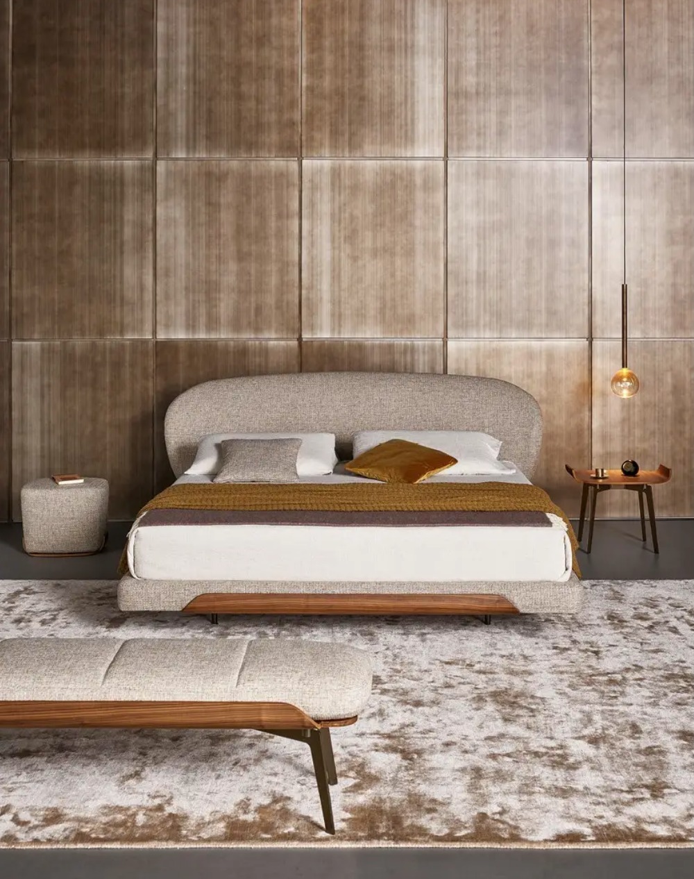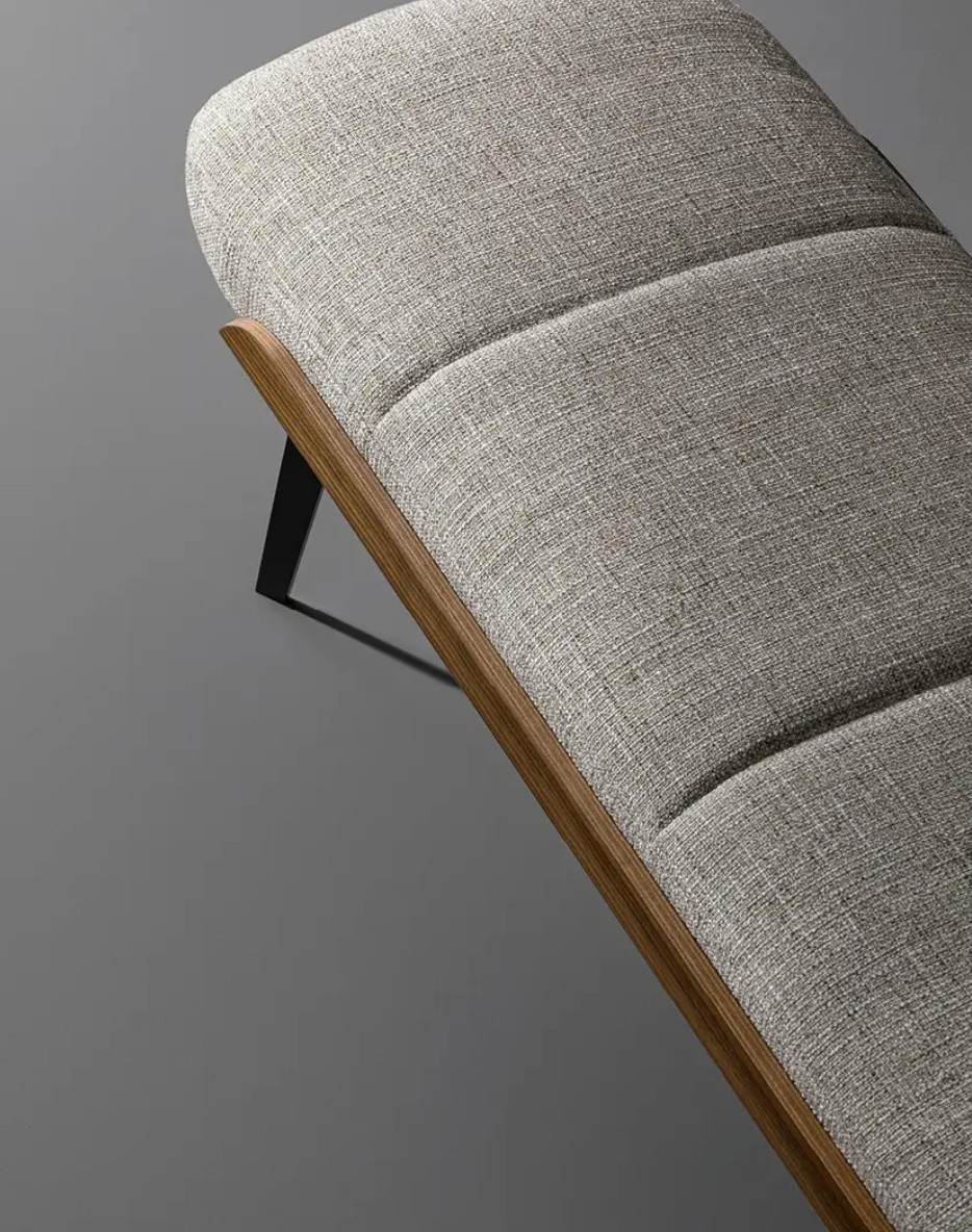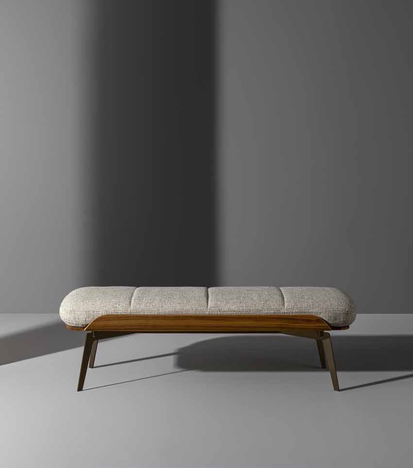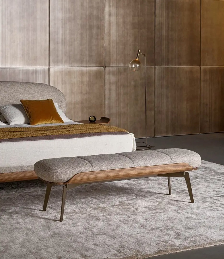 Η συλλογή Olos συμπληρώνεται από το παγκάκι Olos που διακρίνεται για τις πλαϊνές λεπτομέρειες σε κουρβαριστό ξύλο, χαρακτηριστικό γνώρισμα της συλλογής και που υποδηλώνει την σκανδιναβική έμπνευση με τις ισορροπημένες λεπτομέρειες και την αρμονία των όγκων. Υποστηρίζεται από λεπτεπίλεπτα μεταλλικά πόδια που ενσωματώνονται διακριτικά στο συνολικό σχεδιασμό. Το παγκάκι Olos ολοκληρώνει τον χώρο της κρεβατοκάμαρας, καθιστώντας την ακόμα πιο άνετη και λειτουργική.