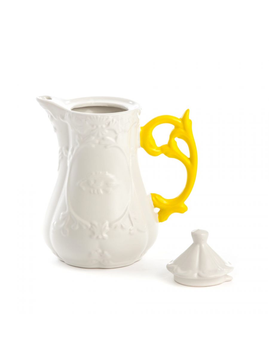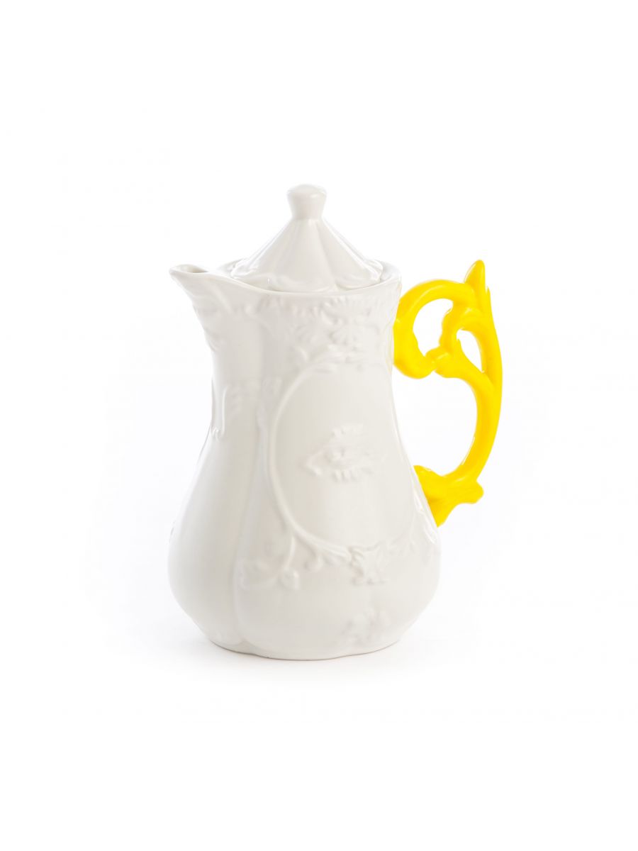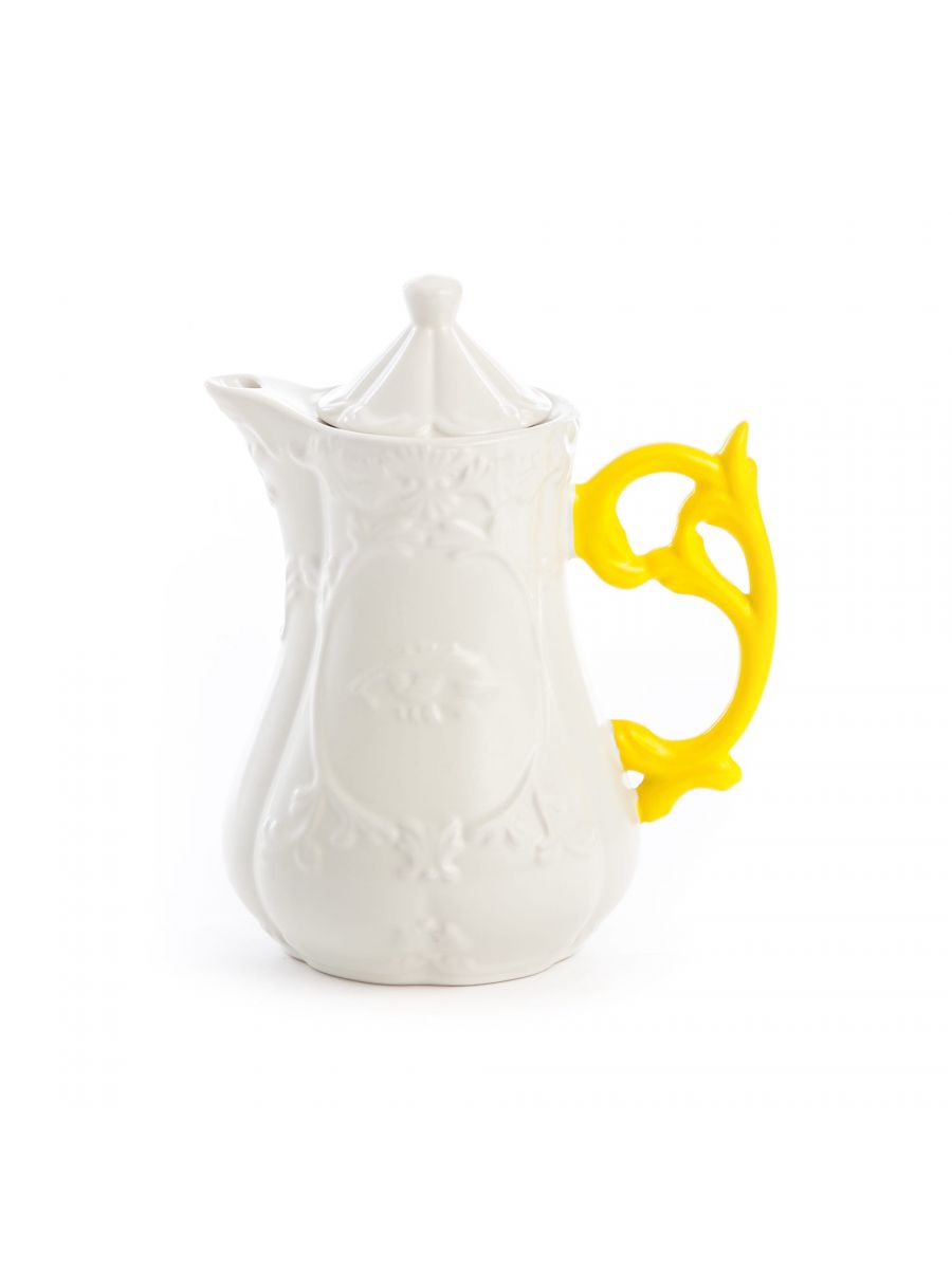 Κούπες, σετ τσαγιού και καφέ με μπαρόκ αισθητική. Λευκή πορσελάνη και χρωματιστό fluorescent χερούλι, για ένα χρωματιστό τρόπο ζωής.