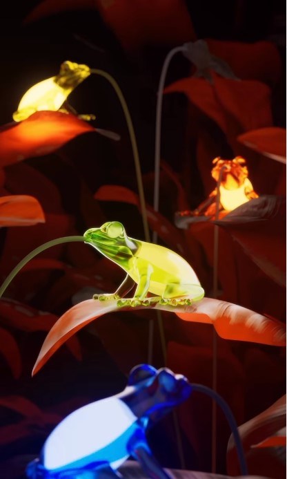 Σχεδιασμένο από τον Marcantonio, το Hungry Frog είναι ένα μικρό επιτραπέζιο/επιτοίχιο φωτιστικό σε σχήμα βατράχου που έφαγε τη λάμπα και τώρα ανάβει στο στομάχι του. Το υφασμάτινο καλώδιο, βγαίνοντας από το στόμα του βατράχου, έχει μήκος 180 cm, με ενσωματωμένο διακόπτη, που σας επιτρέπει να το τοποθετήσετε σε οποιαδήποτε γωνία.