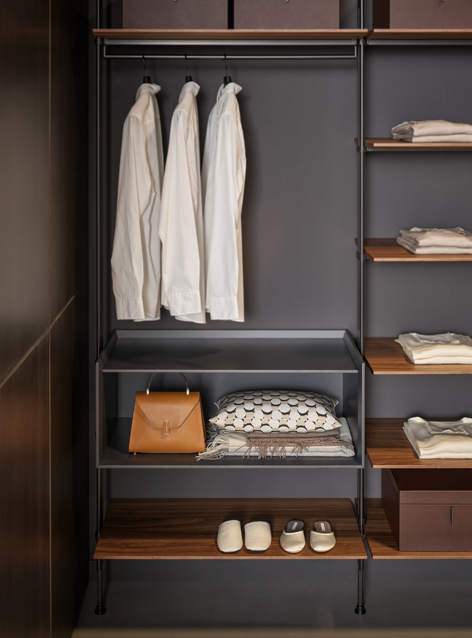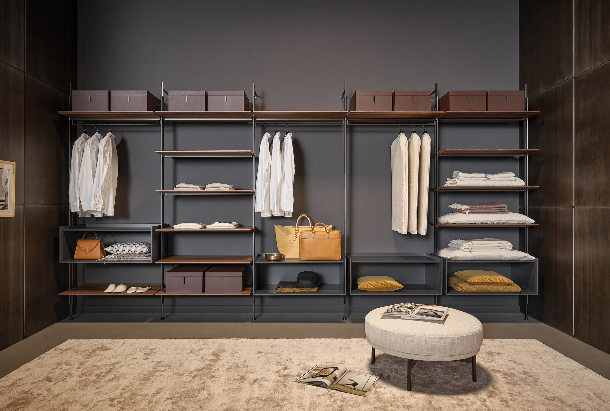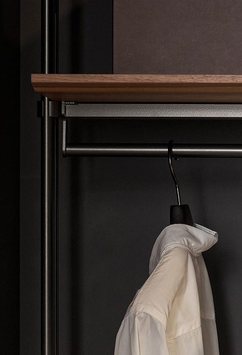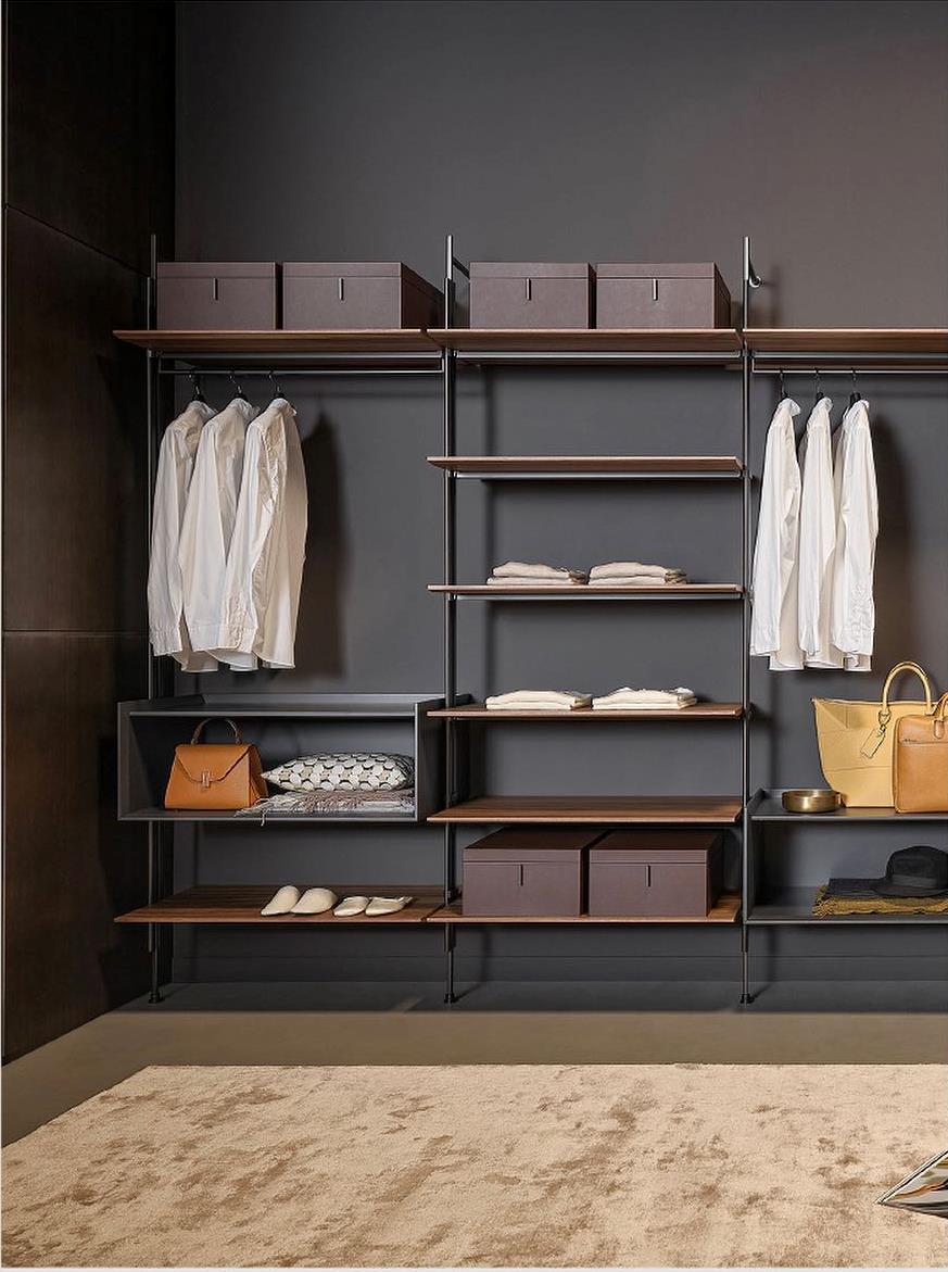 Η ανοιχτή ντουλάπα Roll είναι εμπνευσμένη από την ομώνυμη βιβλιοθήκη που σχεδίασαν οι Dondoli e Pocci για την Bonaldo. Είναι ένα λειτουργικό έπιπλο με εντυπωσιακή θεατρική επίδραση, με αναλογίες, μεγέθη και αξεσουάρ κατάλληλα για λειτουργία ντουλάπας. Είναι εντελώς ανοιχτή, σχεδιασμένη για ευθύγραμμη τοποθέτηση με στερέωση τοίχου. Ο μεταλλικός σκελετός διατίθεται σε φινίρισμα lead, ενώ τα ράφια είναι διαθέσιμα σε ξύλο με φινίρισμα lead ή σε ξύλο καρυδιάς Canaletto για κομψή αντίθεση. Ξύλινα open box και κουτιά αποθήκευσης σε οικολογικό δέρμα, για οργάνωση και εξοικονόμιση χώρου, μπορούν να τοποθετηθούν ανάλογα με τις ανάγκες.