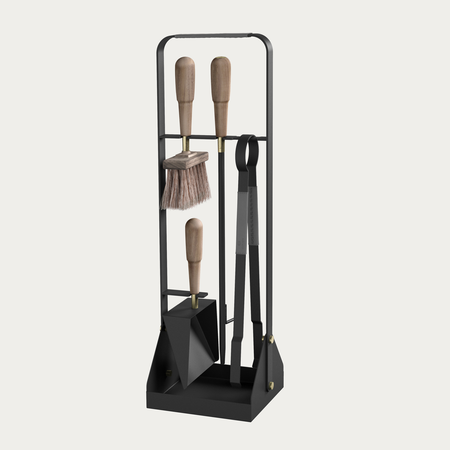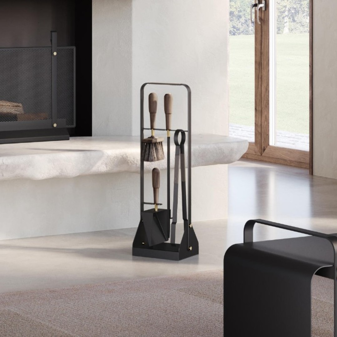 Το απόλυτο στυλάτο σετ εργαλείων για το τζάκι από την εταιρεία Eldvarm. Διαθέτει τα κλασικά εργαλεία που είναι απαραίτητα για το τζάκι καθώς και ένα φυσητήρα/κοντάρι που βοηθάει αρχικά στο άναμα της φωτιάς και ύστερα ρυθμίζει/μετακινεί τα ξύλα. Όλα αυτα στηρίζονται στην μεταλλική βάση τους η οποία, όπως και τα εργαλεία, είναι φτιαγμένη από ατσάλι και ηλεκτροστατική βαφή ειδική για υψηλές θερμοκρασίες και αντοχή. Τέλος για ολοκληρωμένη στυλάτη εμφάνιση τα εργαλεία διαθέτουν λεπτομέρειες σε οργανικό δέρμα και συμπαγή ορείχαλκο, με χειρολαβές σε ξύλο αμερικάνικης καρυδιάς και οξιάς.