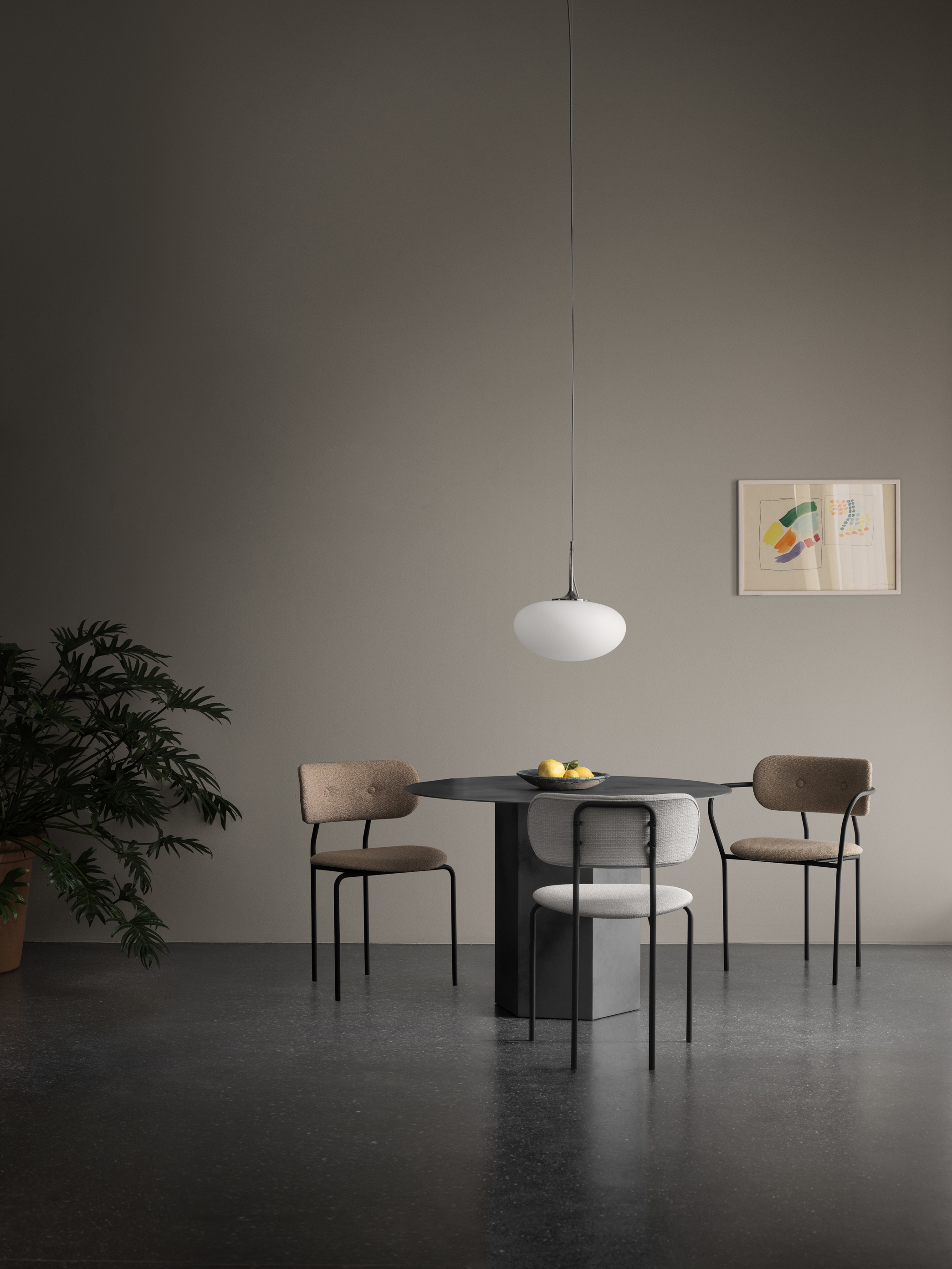 Η τιμή αφορά το κρεμαστό φωτιστικό το οποίο διατίθεται κατόπιν παραγγελίας με μεταλλική βάση σε 3 διαφορετικά χρώματα black chrome, black red, pebble grey.