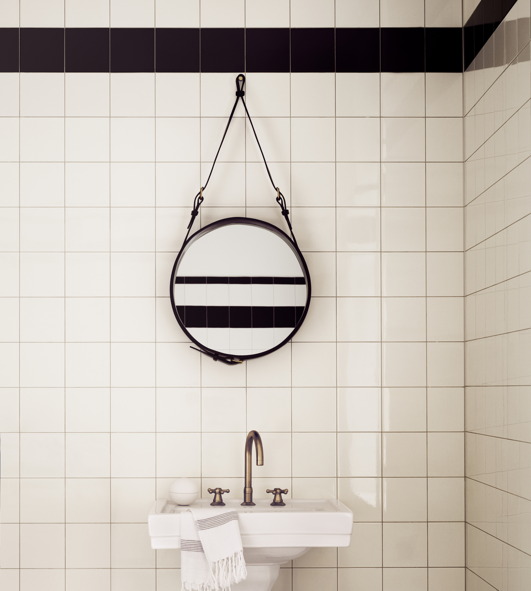 Το 1950, ο Jacques Adnet σχημάτισε μια συνεργασία με τον γαλλικό οίκο μόδας Hermés, όπου ανέπτυξε μια συλλογή από διακριτικά αλλά πληθωρικά έπιπλα και αξεσουάρ με δερμάτινη επένδυση. Ο Adnet ήταν από τους πρώτους σχεδιαστές που συνδύασαν το δέρμα με το γυαλί, όπως στον κομψό και ξεχωριστό δερμάτινο καθρέφτη με λεπτομέρειες εμπνευσμένες από τον χώρο της ιππασίας. Ο διαχρονικός Adnet Wall Mirror Circular προσθέτει μια γλυπτική αξία σε κάθε διάδρομο, μπάνιο ή σαλόνι και τα τρία μεγέθη μπορούν πλεονεκτικά να συνδυαστούν για να δημιουργήσουν μια εξαιρετική έκφραση.