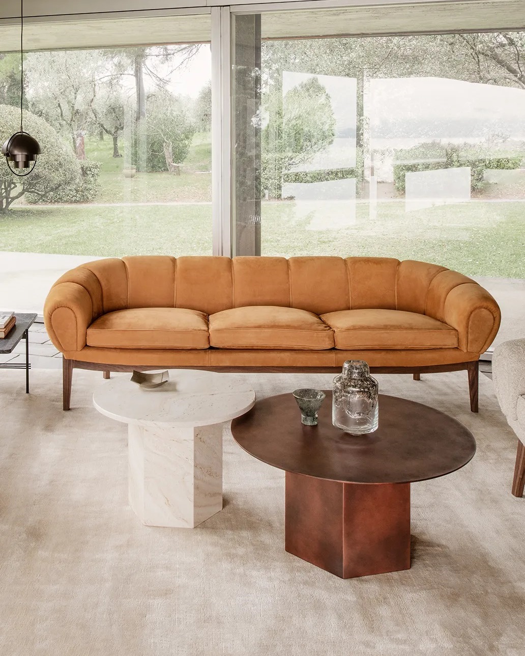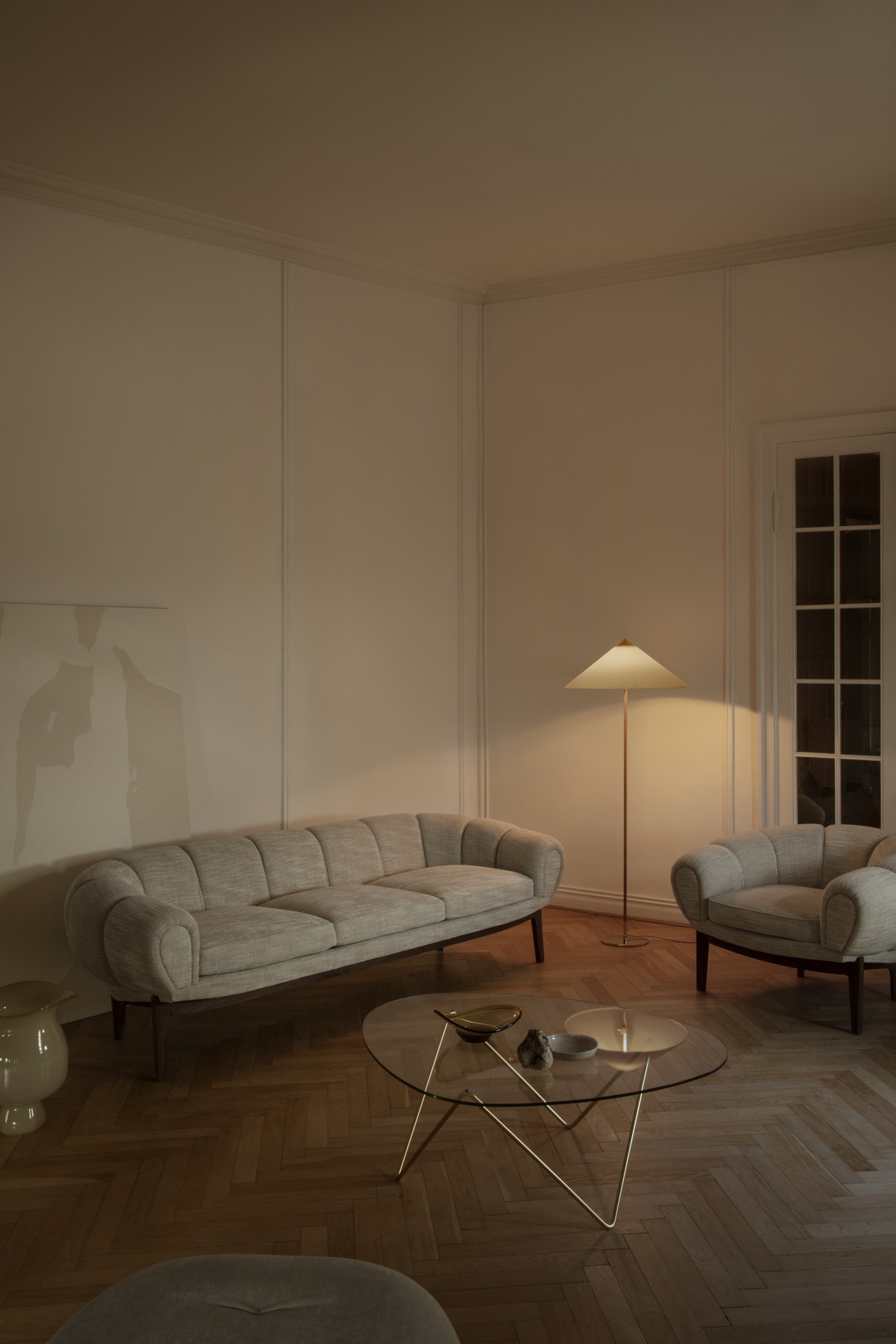 Παιχνιδιάρικος, πληθωρικός με εξαιρετική κατασκευή, ο πρόσφατα ανανεωμένος καναπές Croissant αποτελεί ένα ισχυρό statement σε κάθε χώρο και ένα κειμήλιο για γενιές. Αναμφισβήτητα το έργο του διάσημου αρχιτέκτονα και σχεδιαστή Ilum Wikkelsø, το Croissant ήταν η «ασεβής» απάντησή του στον παραδοσιακό καναπέ Chesterfield, χρησιμοποιώντας τη γαλλική ζύμη ως έμπνευση. Κυκλοφόρησε για πρώτη φορά το 1962, αιχμαλωτίζοντας το πνεύμα των καιρών μιας αισιόδοξης δεκαετίας και έκτοτε είναι ένα πολύτιμο συλλεκτικό κομμάτι. Τώρα η GUBI έχει τελειοποιήσει διακριτικά το πρωτότυπο για να ταιριάζει στα σημερινά σωματικά πρότυπα και για να δώσει σε μια νέα γενιά την ευκαιρία να απολαύσει το όραμα του Wikkelsø. Διαθέσιμος σε δέρμα ή σε ύφασμα, οι περίπλοκες καμπύλες της εμβληματικής μορφής του Croissant επιτυγχάνονται μέσω σχολαστικής ραφής στο χέρι και τοποθετούνται πάνω σε μια βάση από ξύλο καρυδιάς ή δρυός με φινίρισμα λαδιού.