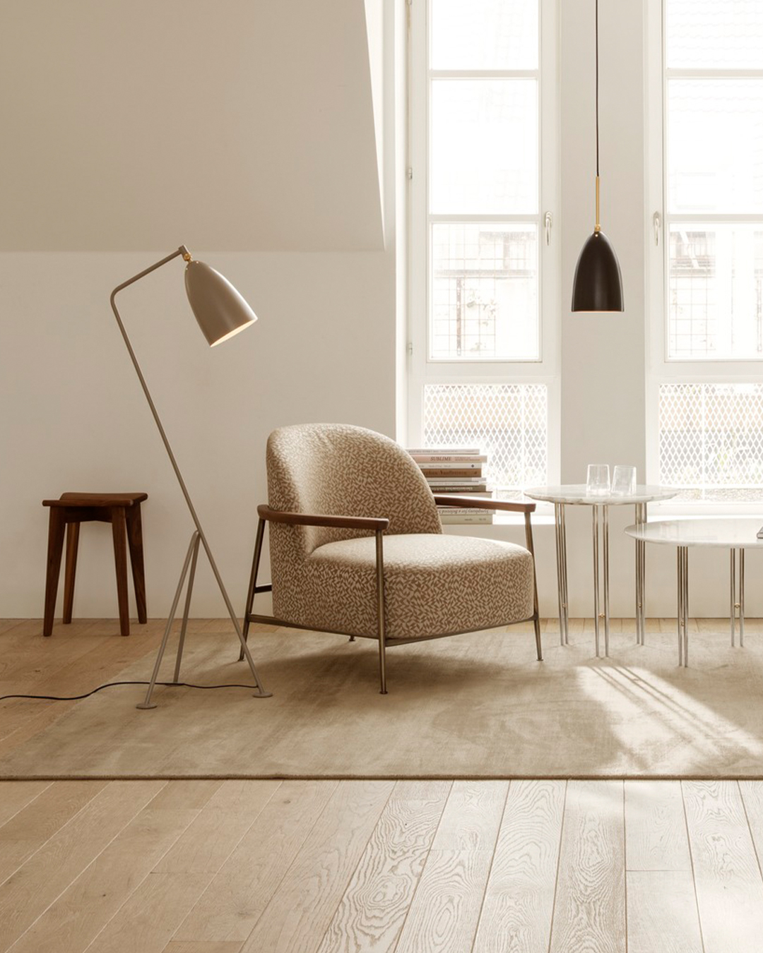 Το κρεμαστό φωτιστικό Gräshoppa προέκυψε από το αρχικό φωτιστικό της Greta M. Grossman από το 1947, χρησιμοποιώντας το χαρακτηριστικό ατσάλινο αμπαζούρ που συνδυάζει με επιτυχία την ελαφρότητα και τη λειτουργικότητα σε έναν μοντέρνο αλλά οργανικό χαρακτήρα. Η ιδιότροπη σχεδιαστική γλώσσα είναι χαρακτηριστική των κομματιών της Grossman και αντανακλά έντονα σε όλη τη συλλογή της. Το κρεμαστό φωτιστικό Gräshoppa προσδίδει ένα μοντέρνο στυλ και μια κλασική κομψότητα σε κάθε χώρο. Ταιριάζει απόλυτα πάνω από έναν πάγκο κουζίνας ή σε ζεύγη πάνω από το τραπέζι φαγητού.