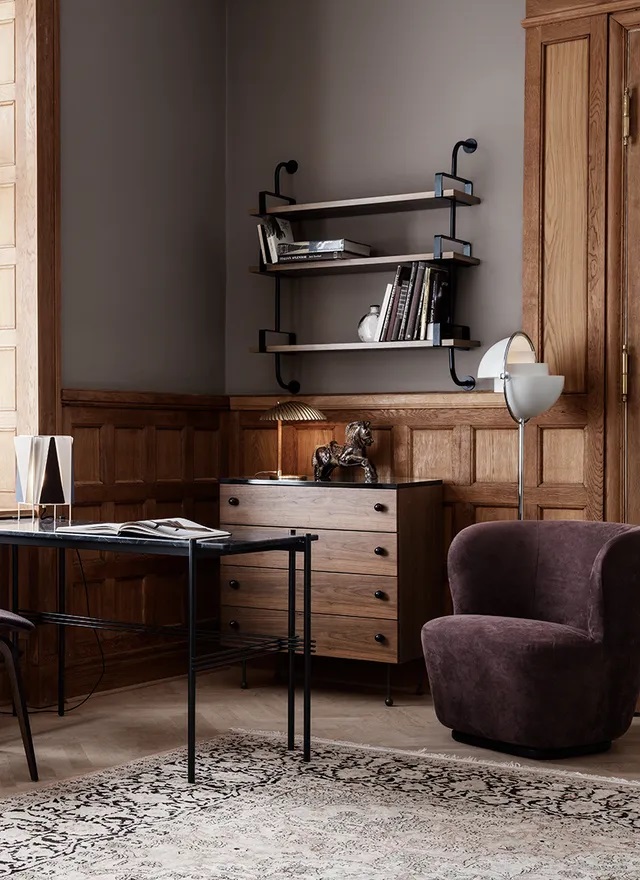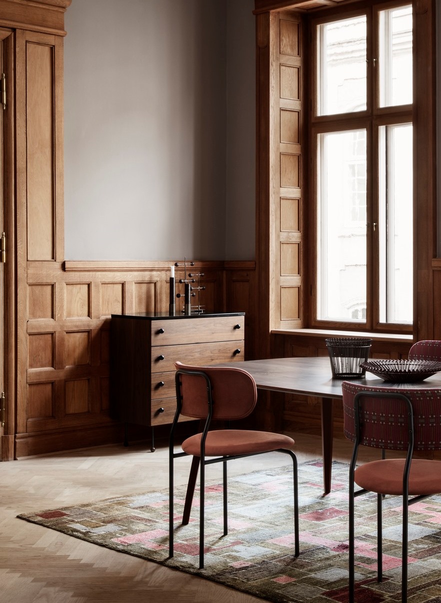 Σχεδιάστηκε το 1952 από την Greta M. Grossman, αλλά η συρταριέρα ονομάστηκε 62 καθώς θεωρήθηκε ότι ήταν δέκα χρόνια μπροστά από την εποχή της. Η συρταριέρα 62 απεικονίζει την τάση της σχεδιάστριας για εξαιρετικά σχήματα και ασυνήθιστο συνδυασμό υλικών. Τα λεπτεπίλεπτα μεταλλικά πόδια με το σφαιρικό τελείωμα, χαρακτηριστικό γνώρισμα της Grossman, έρχονται σε αντίθεση με το αιχμηρό ορθογώνιο σχήμα σε πολυτελή αμερικανική καρυδιά, προσδίδοντας στο έπιπλο μια ελαφριά εμφάνιση που σχεδόν αψηφά τη βαρύτητα. Το βαθύ, μαύρο γυαλιστερό φινίρισμα στην επιφάνεια του και οι μικρές ξύλινες μασίφ σφαίρες, προσθέτουν μια εκπλεπτυσμένη κομψότητα.