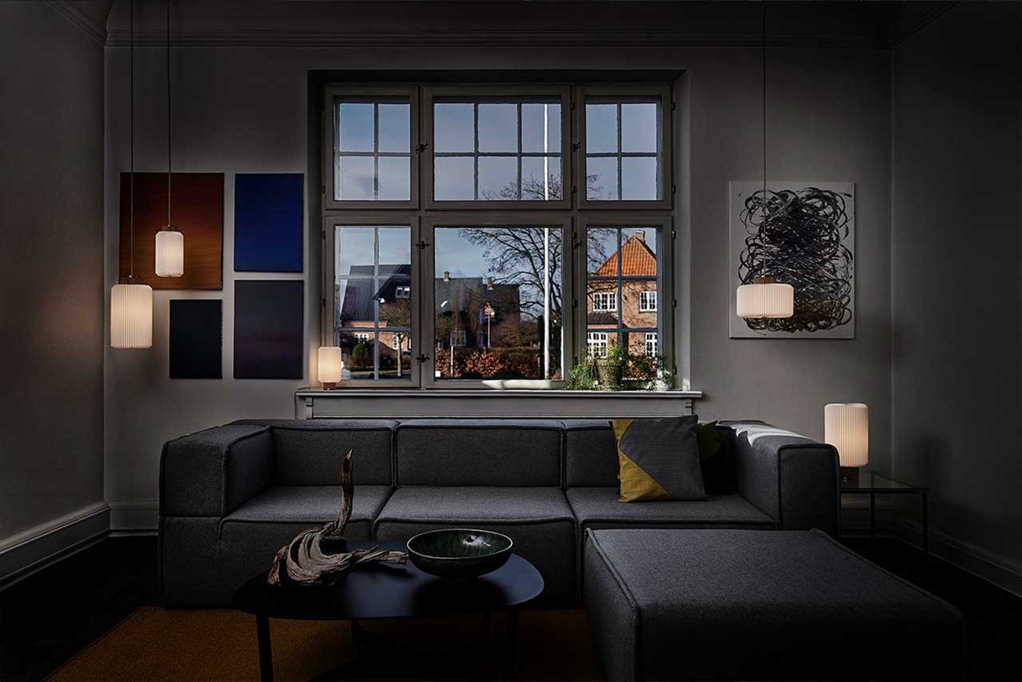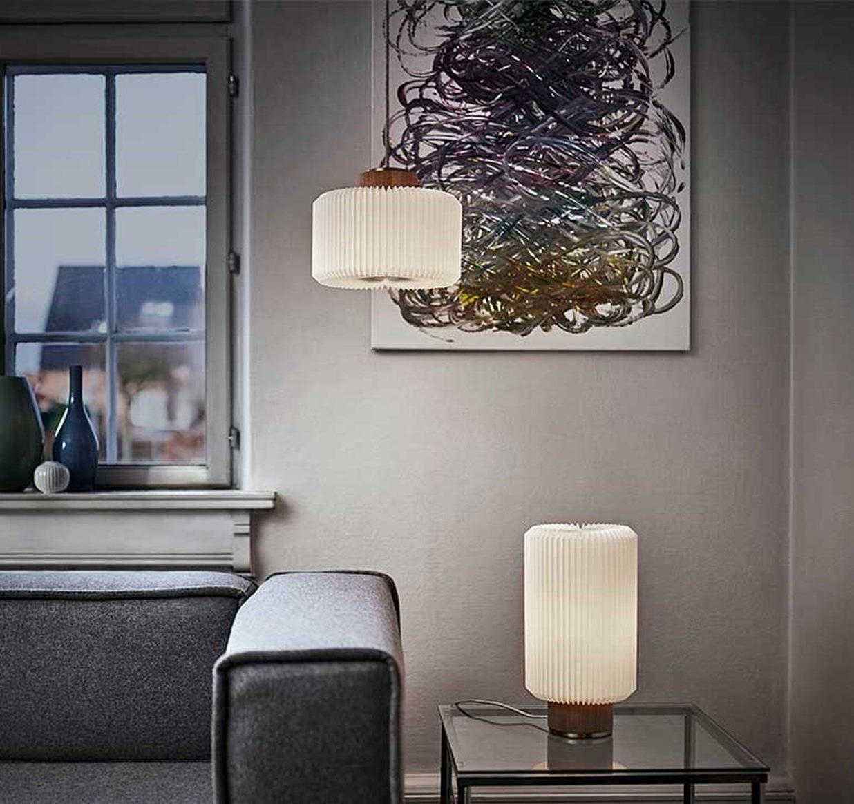 Το Cylinder είναι μια απλή, αλλά καινοτόμος ιδέα φωτισμού που διαθέτει διπλωμένα στο χέρι κυλινδρικά αμπαζούρ και βάσεις από ανοιχτόχρωμο ξύλο δρυός με ορειχάλκινες λεπτομέρειες. Η συλλογή περιλαμβάνει τόσο κρεμαστά όσο και επιτραπέζια φωτιστικά σε διάφορα μεγέθη.