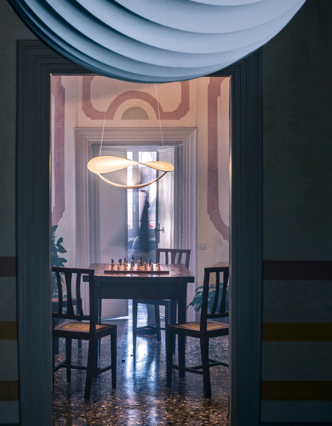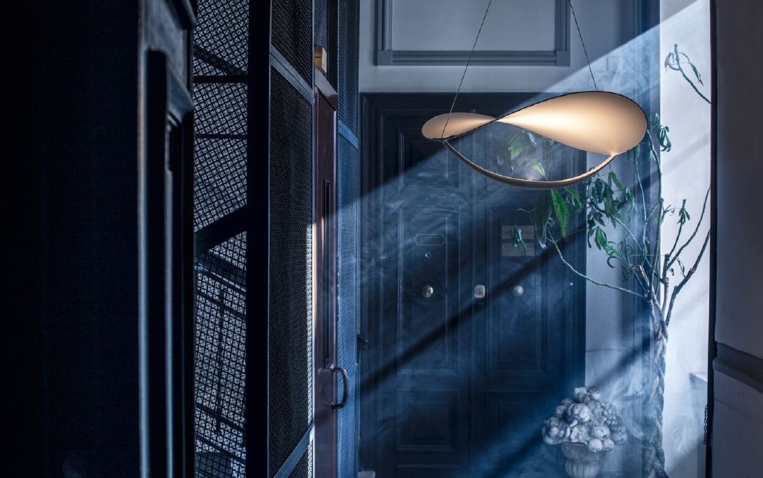 Μεγάλο σε μέγεθος αλλά ανάλαφρο και δυναμικό, το κρεμαστό φωτιστικο Plena προσφέρει διπλό φωτισμό: αντανακλάται στην επιφάνεια κάτω από αυτό και διαχέεται προς την οροφή. Ένας συναρπαστικός φωτισμός, ιδιαίτερης γοητείας, που διαπερνά πλήρως ένα δωμάτιο ενώ παραμένει απαλό και φιλόξενο. Τοποθετημένο πάνω από ένα τραπέζι, το Plena δεν εκπέμπει ποτέ την παραμικρή εκτυφλωτική λάμψη.