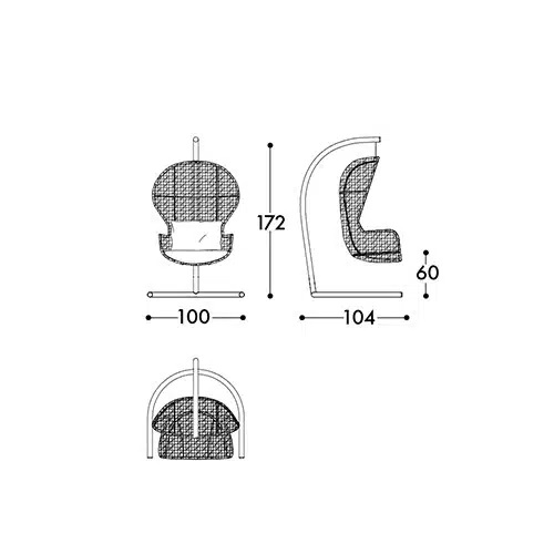 Τόσο στην κρεμαστή έκδοση όσο και στην έκδοση με δομή ανάρτησης, συμπεριλαμβάνονται τα σχοινιά, ένα μαξιλάρι καθίσματος και ένα πλάτης με αφαιρούμενο κάλυμμα, σε ποικιλία υφασμάτων εξωτερικού χώρου.