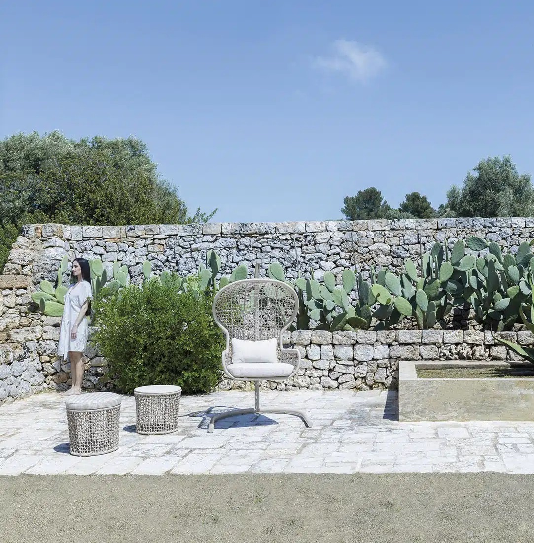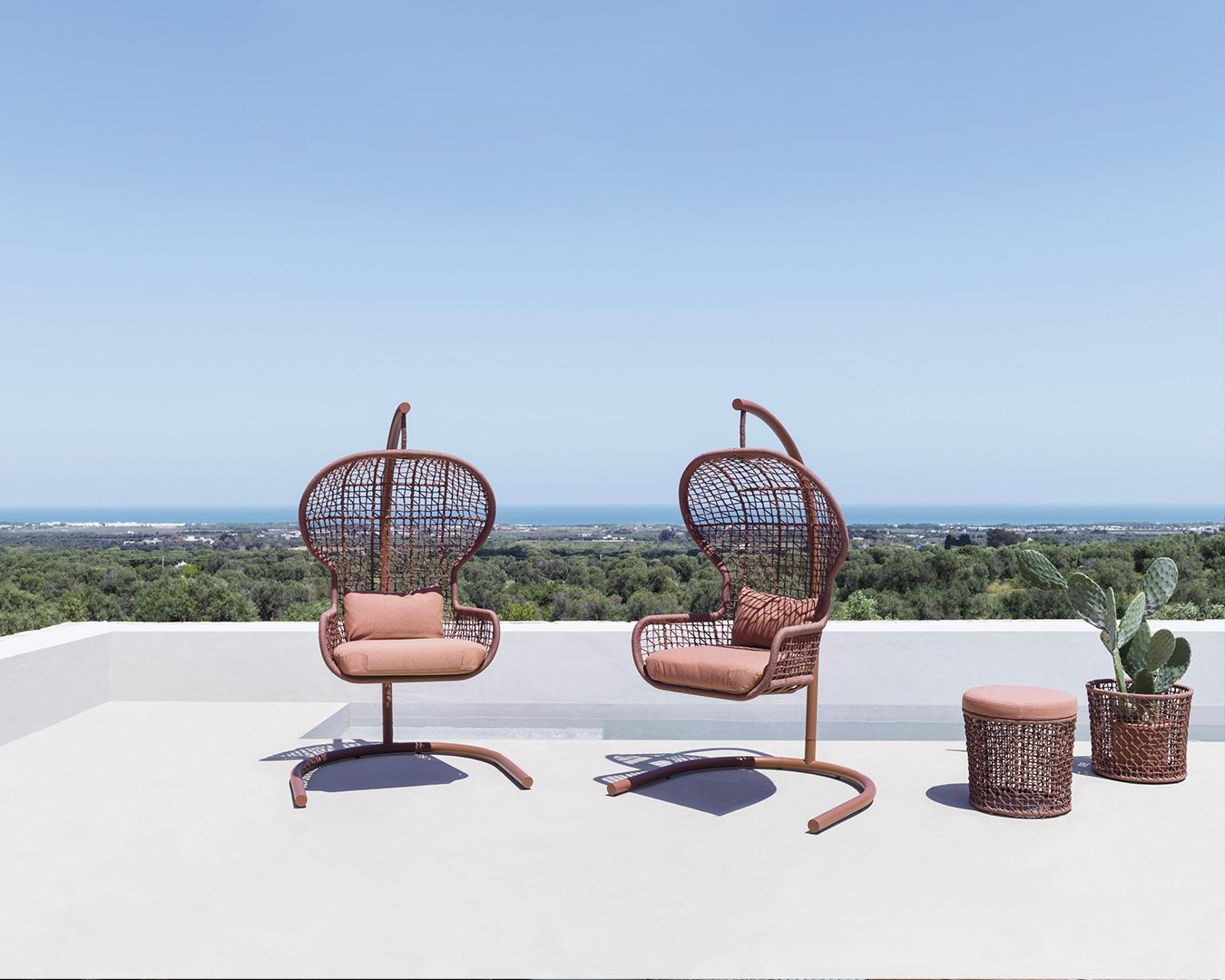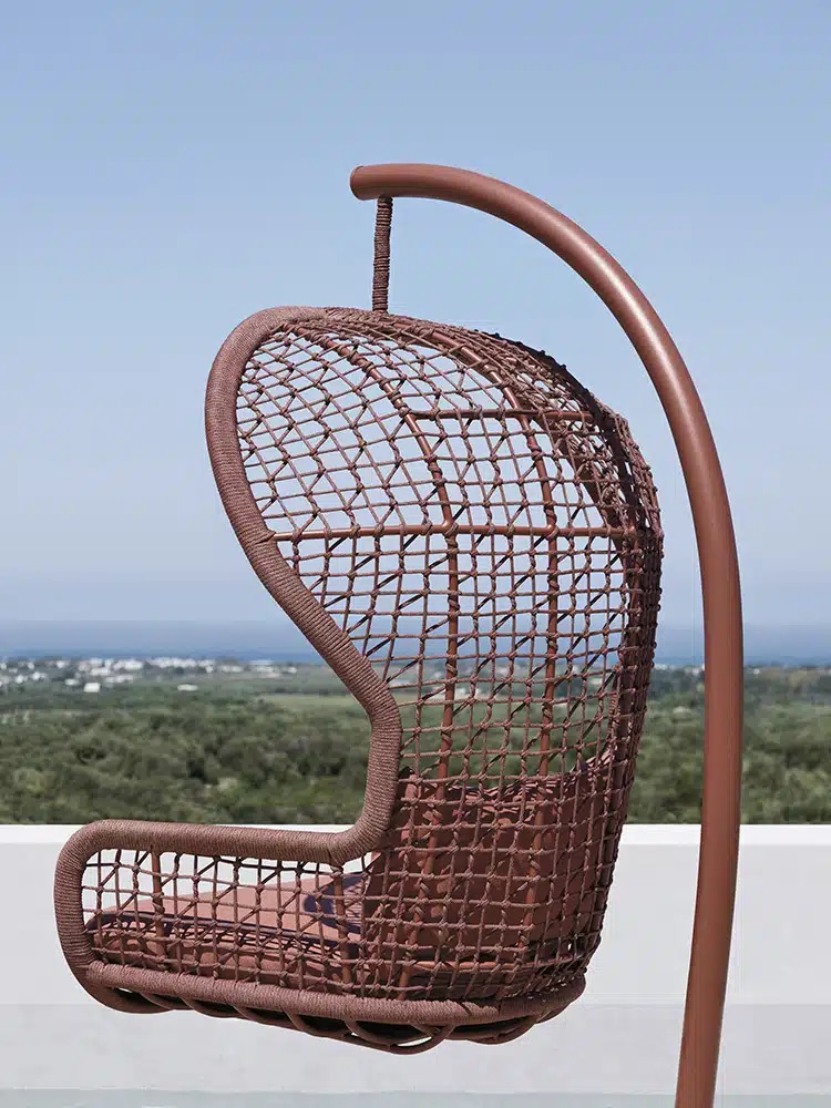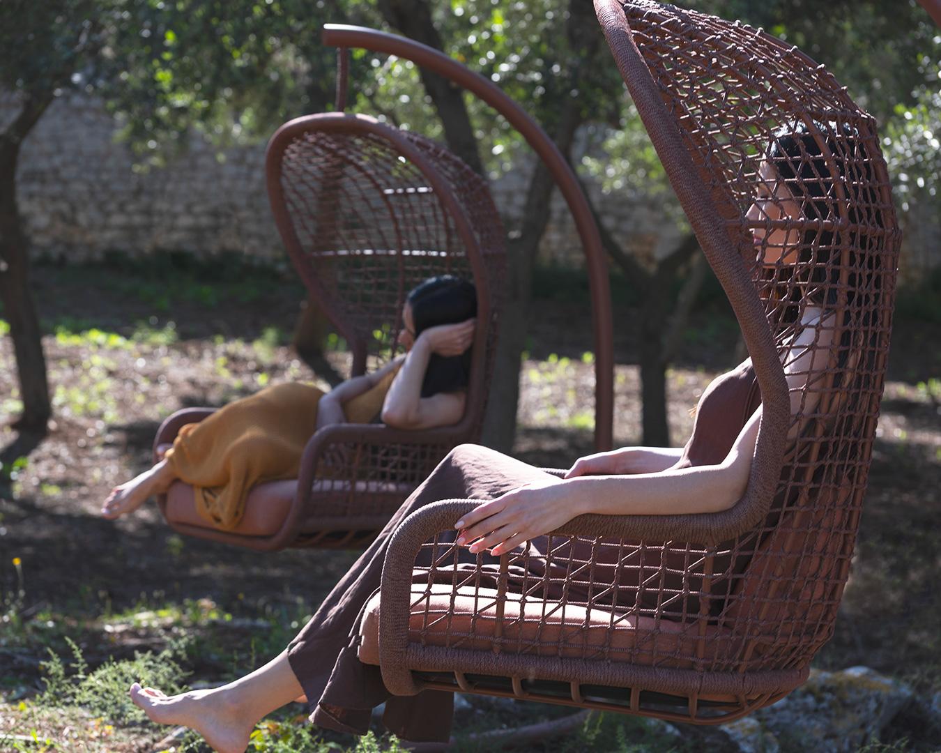 Ένα καταφύγιο, ένα κρεμαστό λίκνο στο οποίο μπορείτε να ζήσετε στιγμές απόλυτης χαλάρωσης. Η κούνια της συλλογής Emma, σχεδιασμένη από την αρχιτέκτονα Monica Armani, χαρακτηρίζεται από την απαράμιλλη χειροποίητη ύφανση της και εμπνέεται από τις σαγηνευτικές γραμμές της Emma Bergère. Μοναδική στη μορφή της, είναι ο τέλειος σύντροφος για τα καλοκαιρινά βράδια.