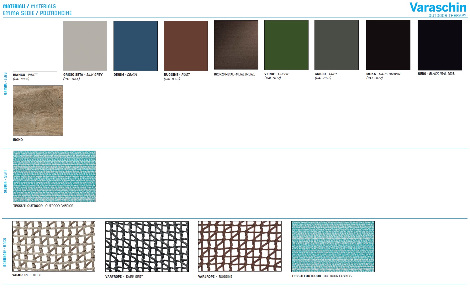 Διατίθεται κατόπιν παραγγελίας με πόδια από αλουμίνιο σε εννέα διαφορετικά φινιρίσματα και κέλυφος με ύφανση συνθετικού σχοινιού σε μπέζ, σκούρο γκρί ή rust.