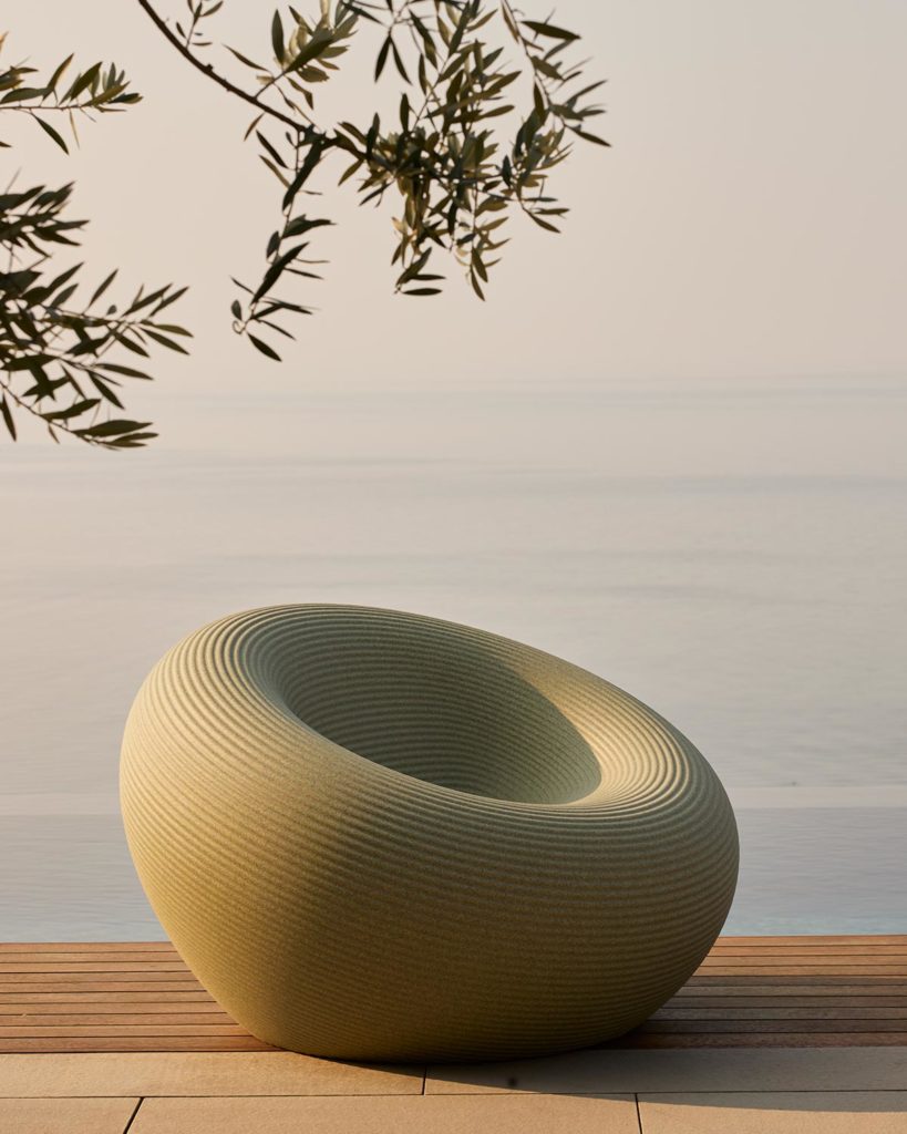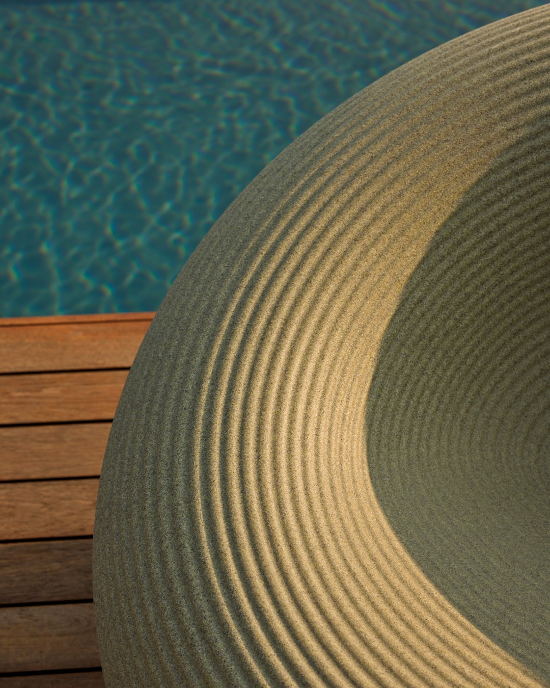 Η πολυθρόνα Nami έχει ένα τέλειο κυκλικό σχήμα όπου τα καλούπια που χαρακτηρίζουν την επιφάνειά της ξετυλίγονται από το κέντρο προς τις άκρες της με μια ακολουθία ομόκεντρων δακτυλίων. Στο κέντρο της πολυθρόνας υπάρχει ένα κανάλι για την παλινδρόμηση του νερού.
