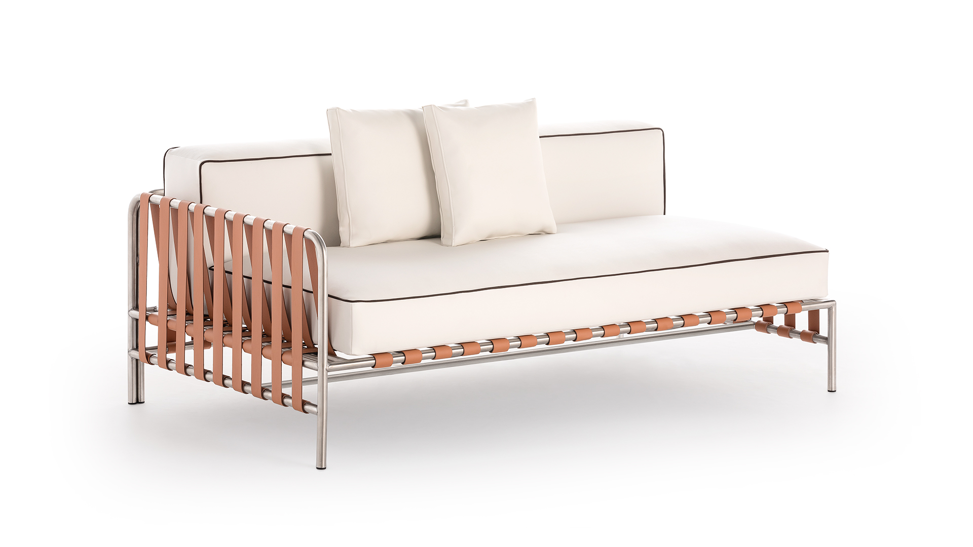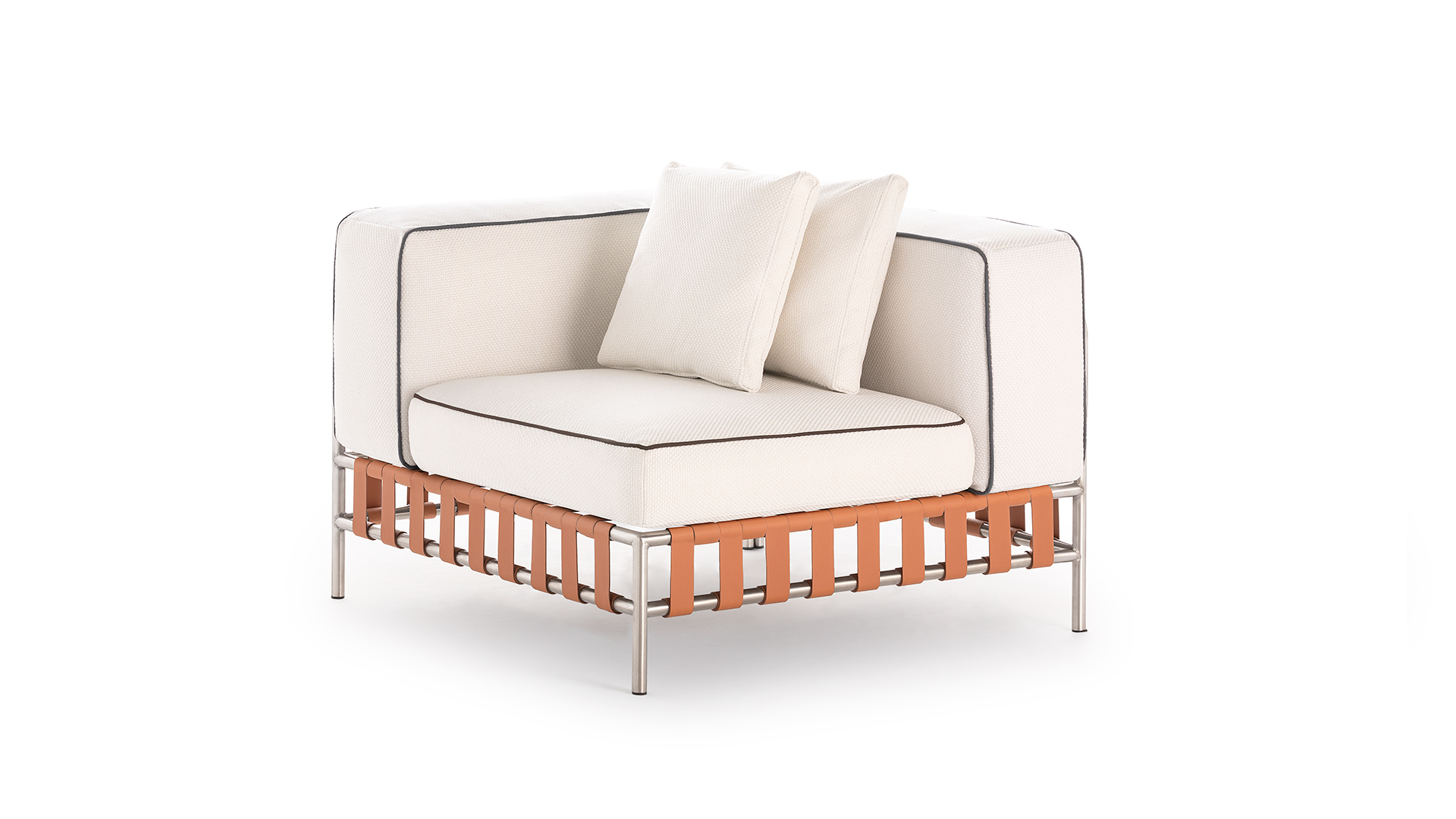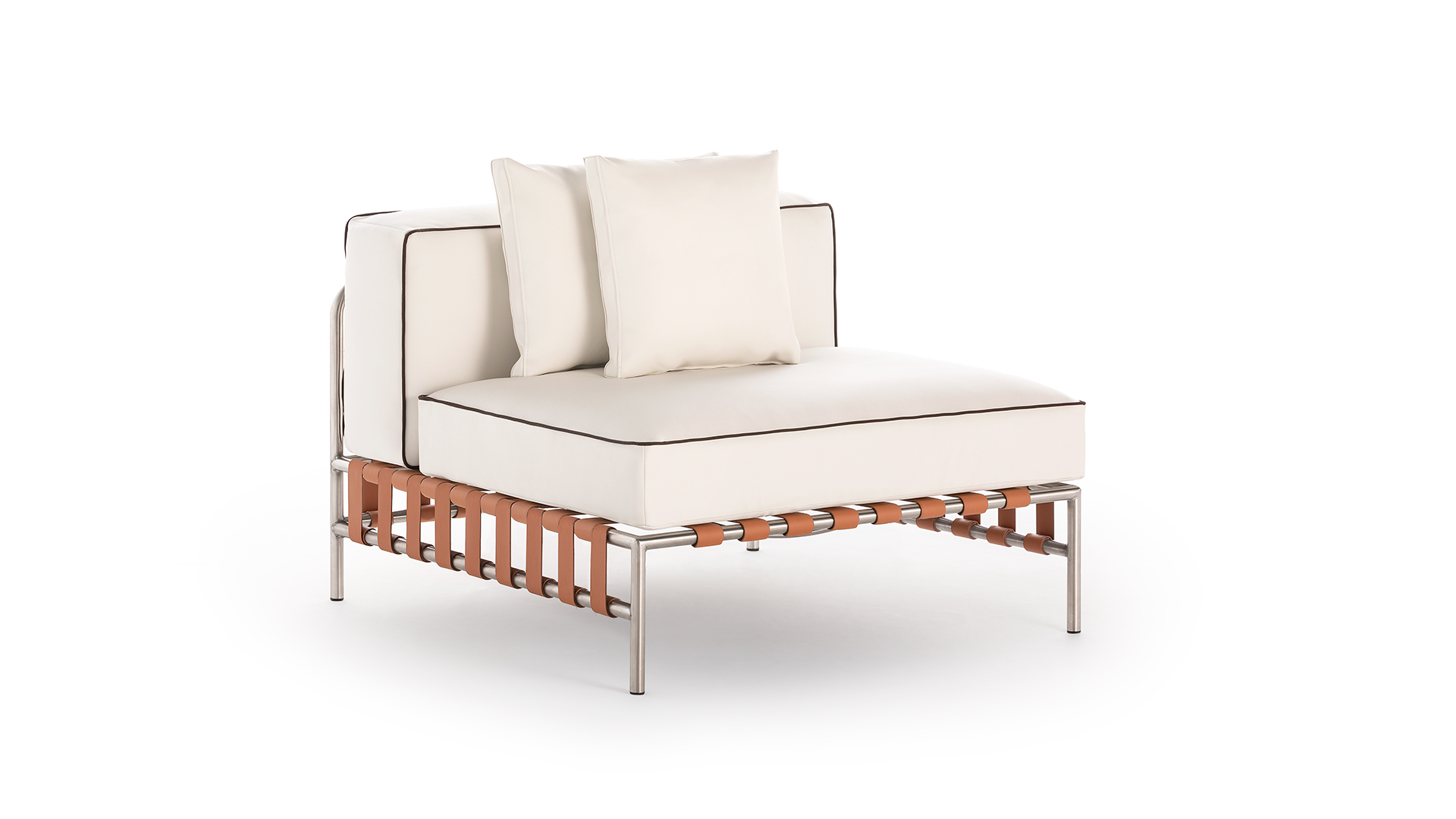 Ο καναπές της συλλογής διατίθεται κατόπιν παραγγελίας σε διθέσιο και σε έξι μονάδες που μας επιτρέπουν να δημιουργήσουμε την καταλληλότερη για το χώρο μας σύνθεση.