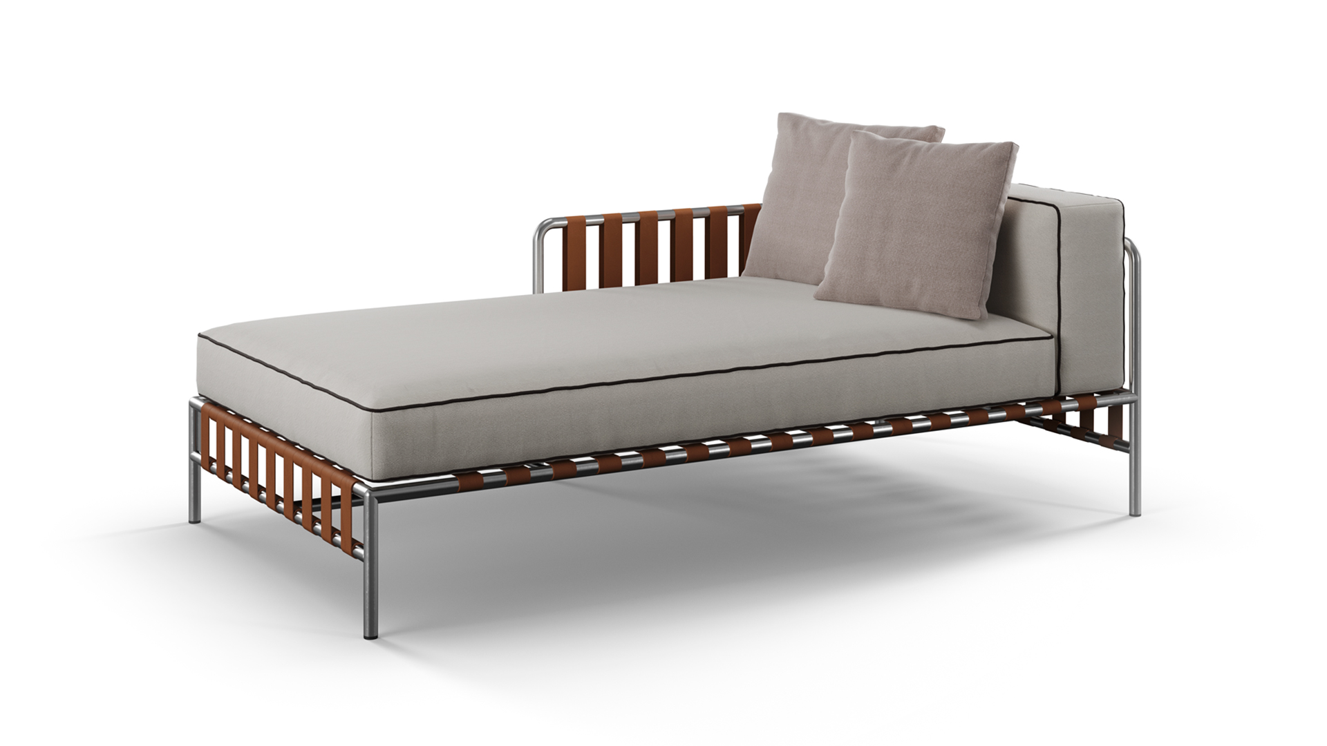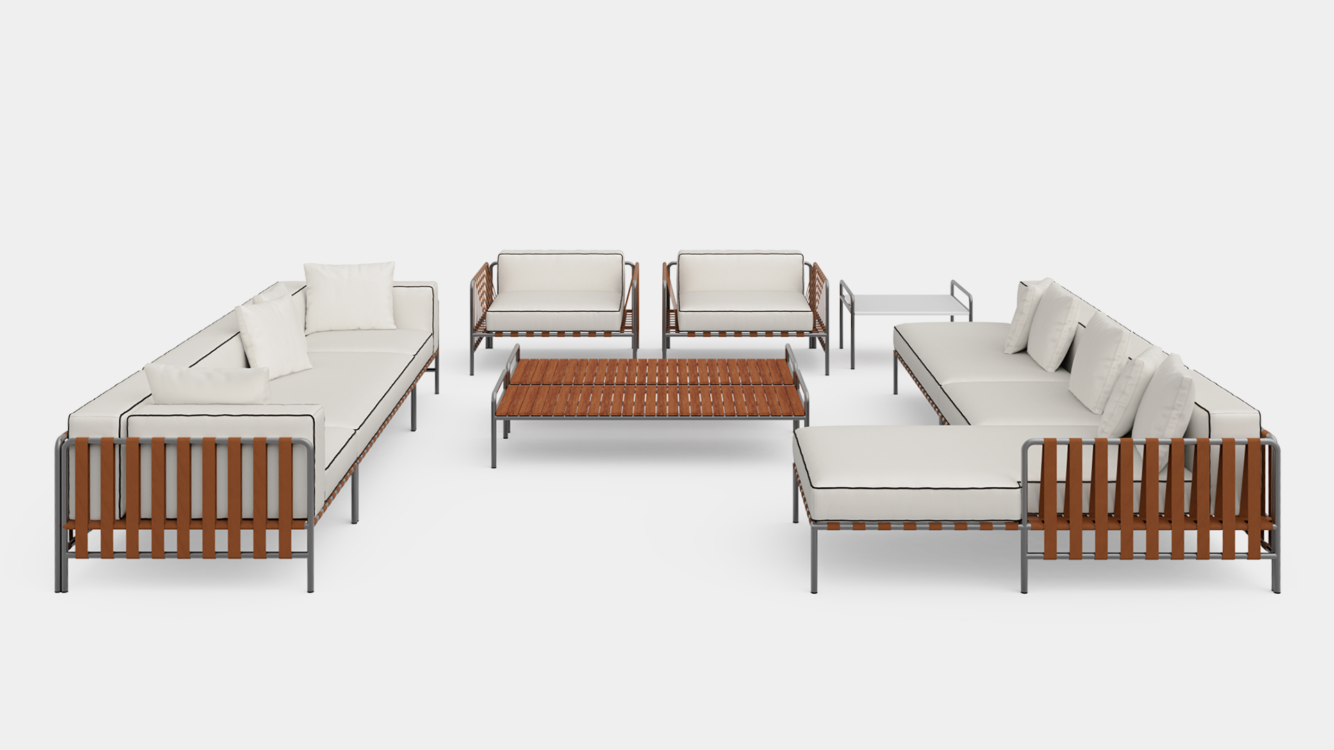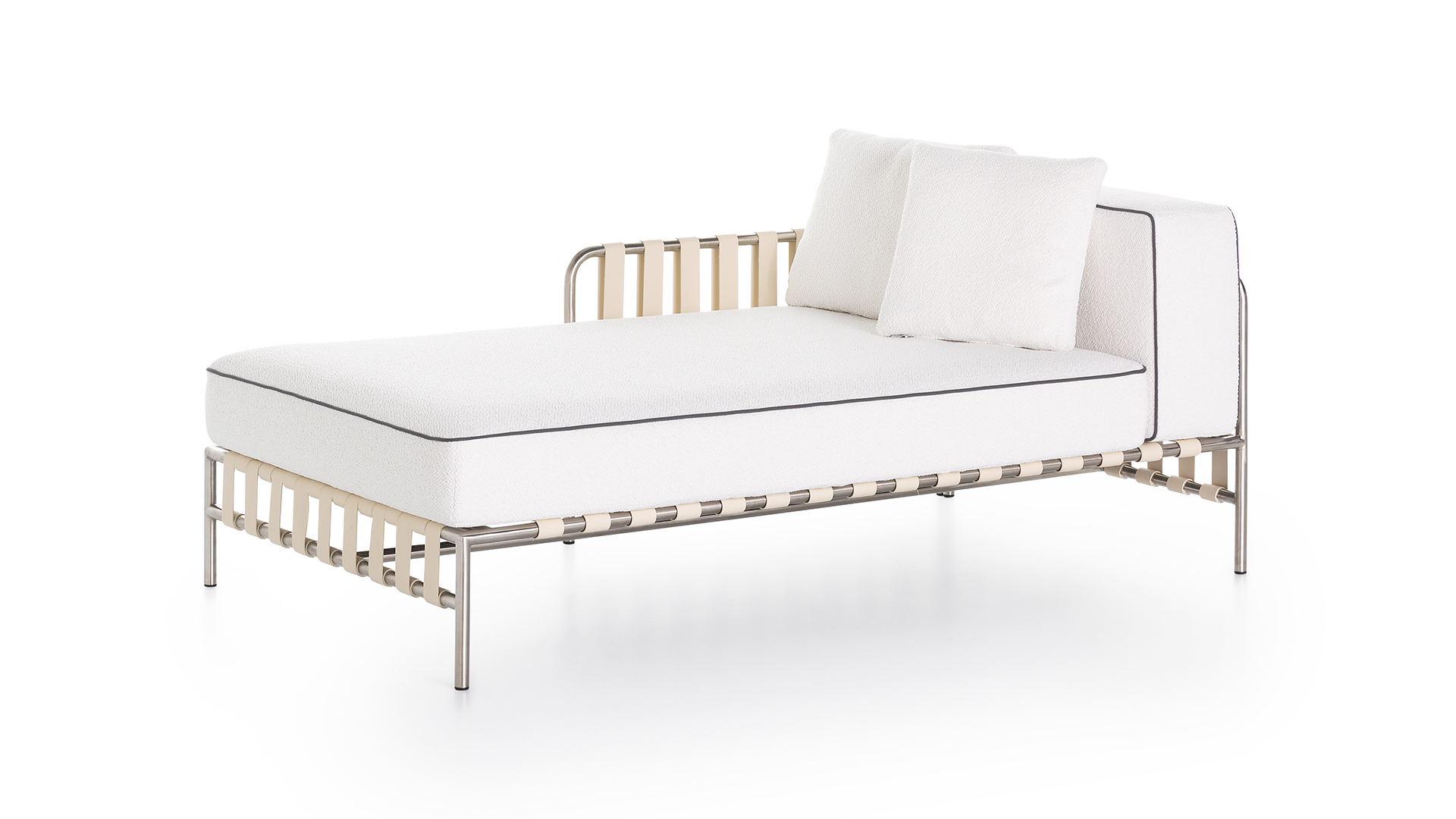 Ο καναπές της συλλογής διατίθεται κατόπιν παραγγελίας σε διθέσιο και σε έξι μονάδες που μας επιτρέπουν να δημιουργήσουμε την καταλληλότερη για το χώρο μας σύνθεση.