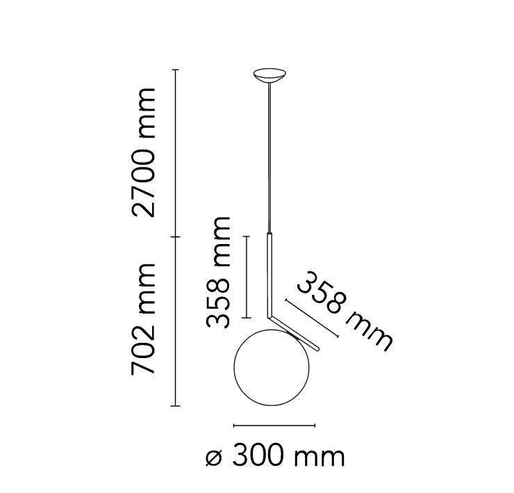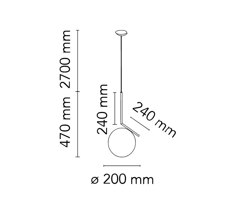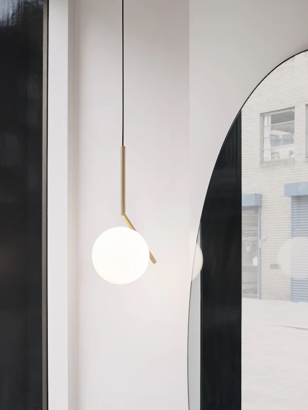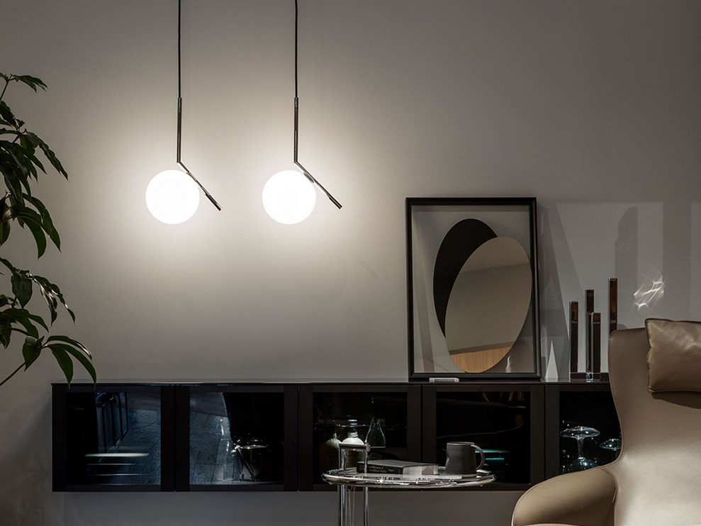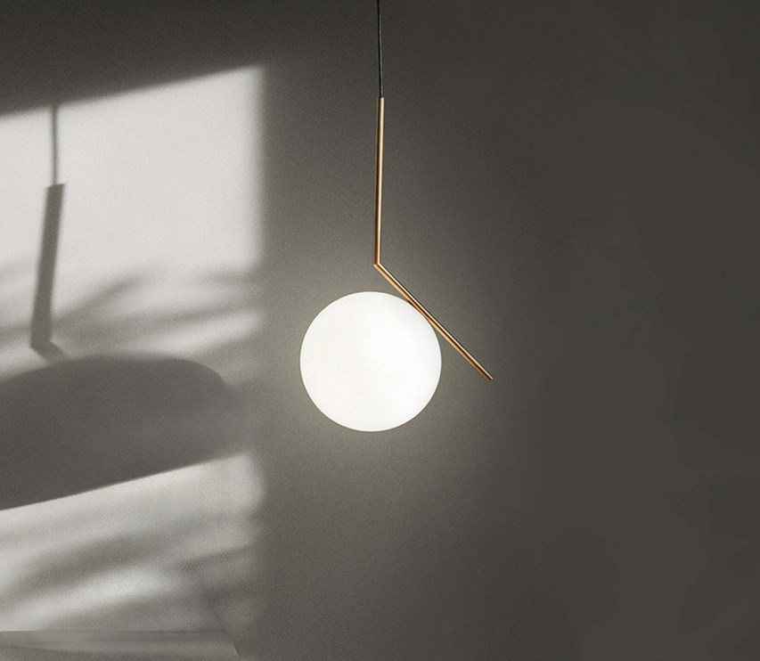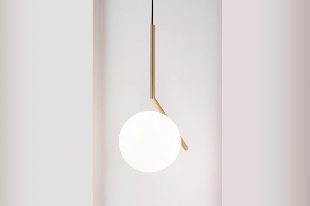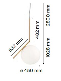 Η κρεμαστή έκδοση της IC περιλαμβάνει την χαρακτηριστική σφαίρα από φυσητό γυαλί που παρέχει διάχυτο φωτισμό αψηφώντας μαγικά τη βαρύτητα χάρη σε ένα μεταλλικό στέλεχος από ορείχαλκο, χρώμιο ή μαύρο φινίρισμα.