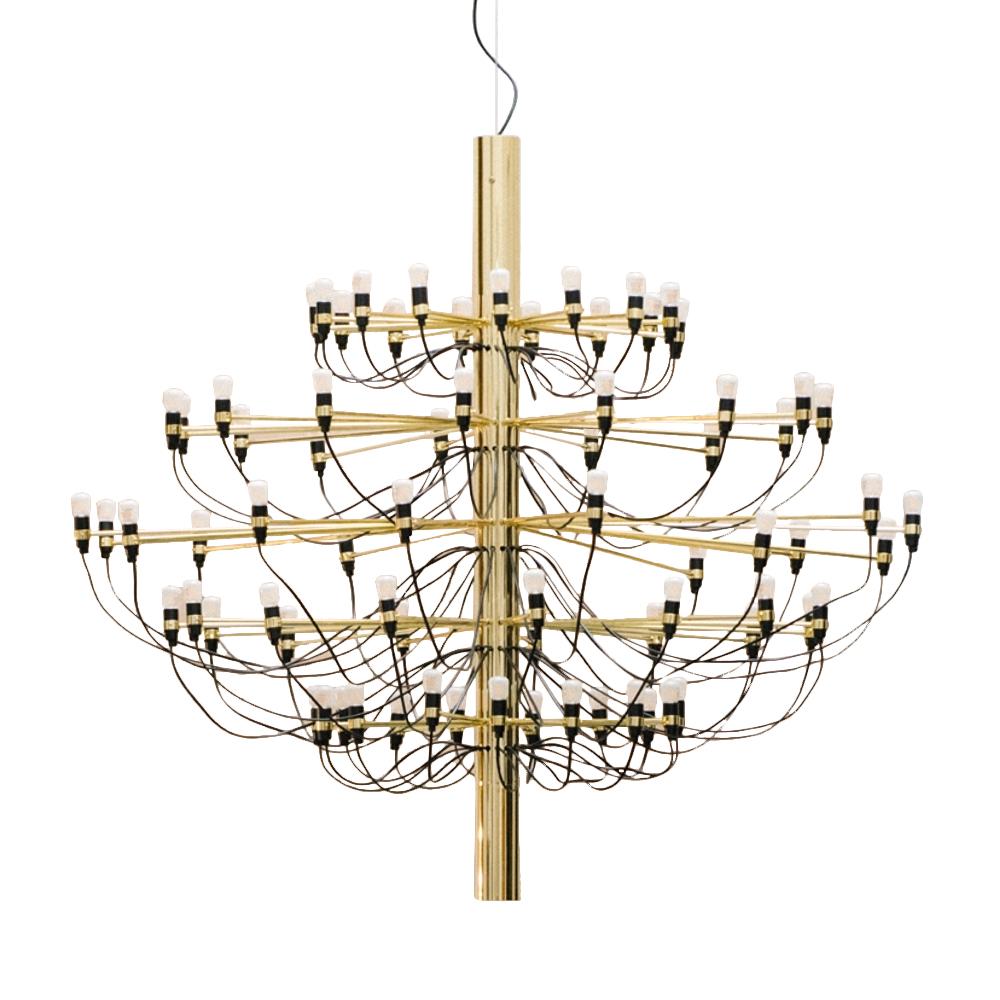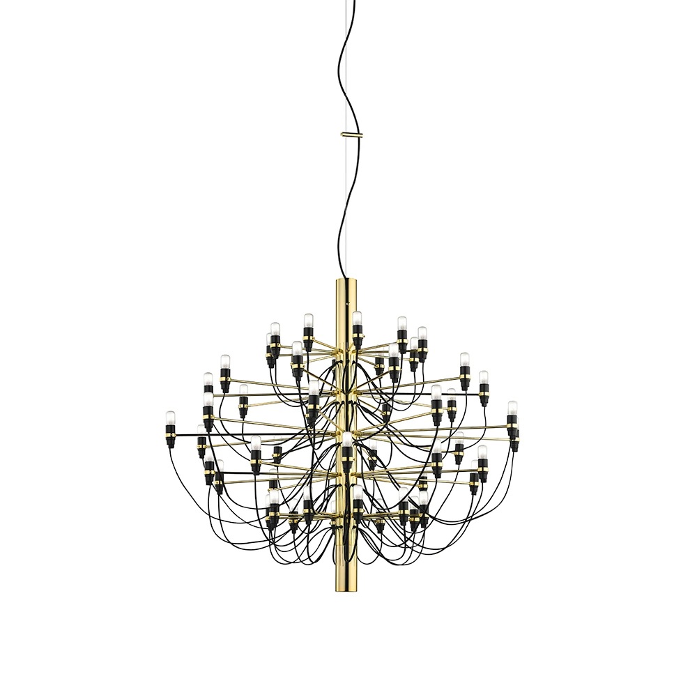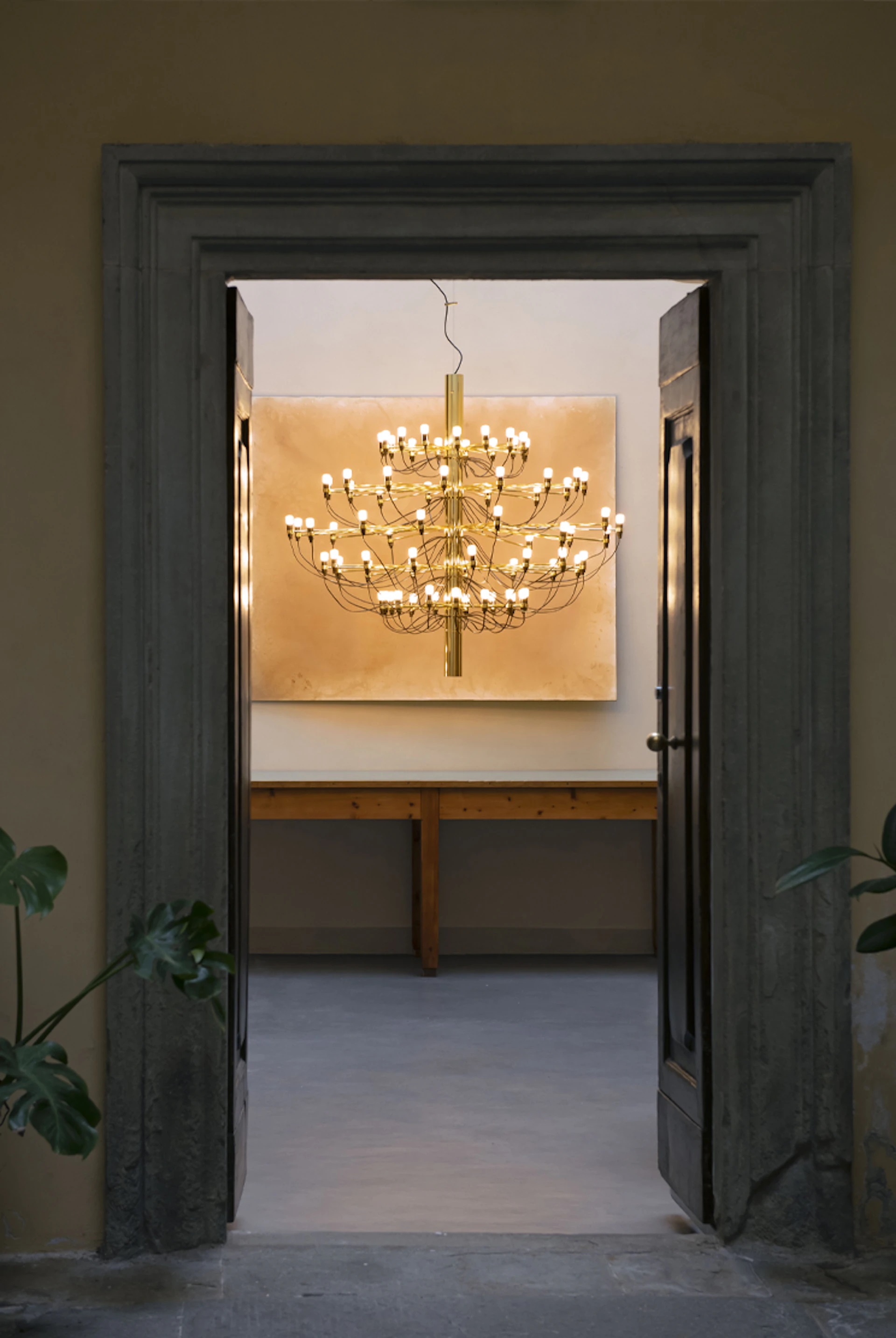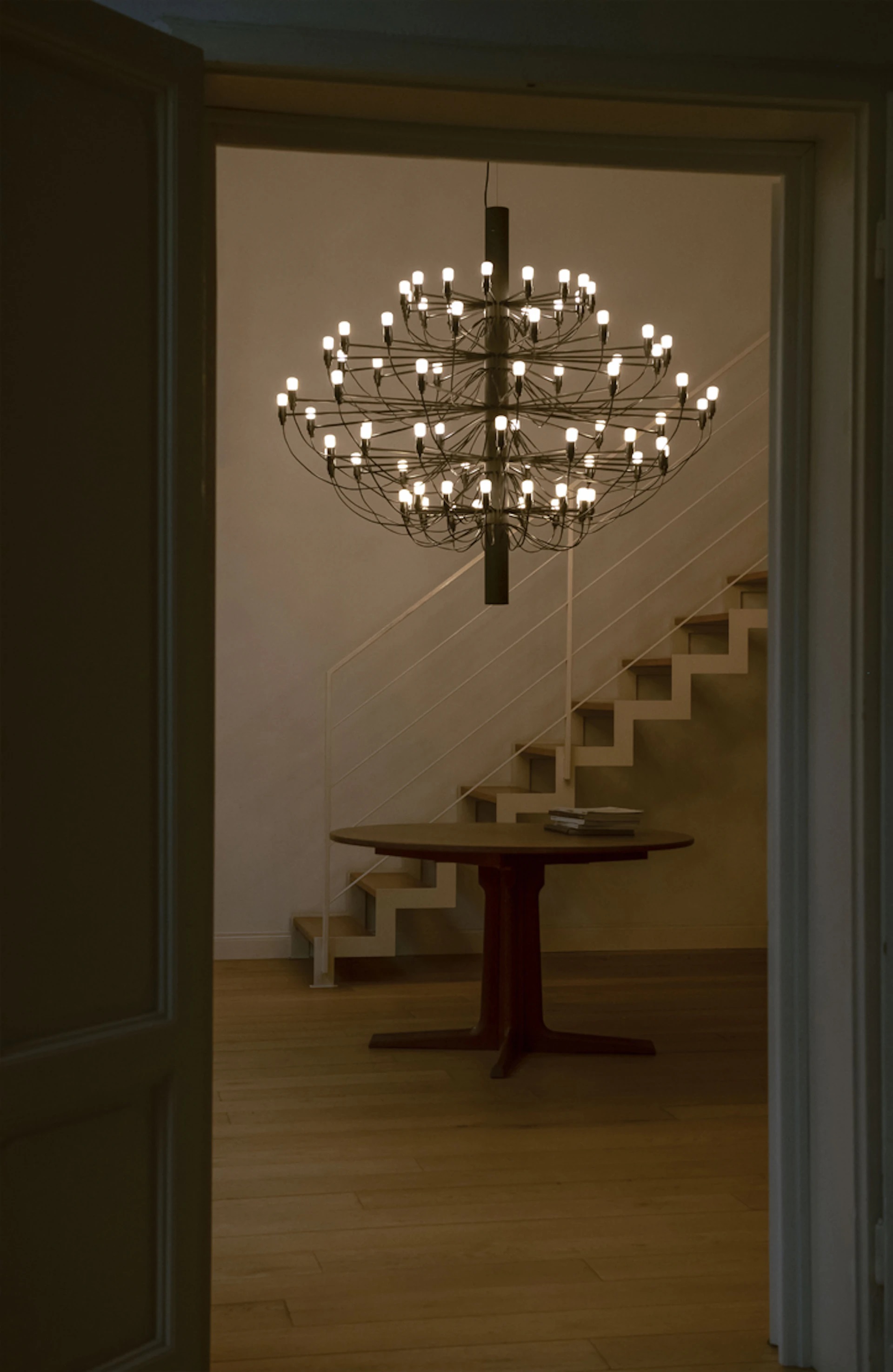 Από τον master του φωτισμού Gino Sarfatti, ένας σύγχρονος πολυέλαιος που συνδυάζει βιομηχανικά στοιχεία με μια θεατρικότητα και διάθεση του μέσου αιώνα. Με έναυσμα την κλασική αισθητική "Chandelier", ο Gino Sarfatti σχεδίασε τον εμβληματικό πολυέλαιο 2097 το 1958. Τόσο οι λαμπτήρες όσο και τα καλώδια είναι εμφανή, προκύπτοντας έτσι ένα μοντέρνο και μινιμαλιστικό σχήμα. Αρχικά ο πολυέλαιος 2097 δημιουργήθηκε με 18, 30 και 50 λαμπτήρες. Τώρα επεκτείνεται σε μια νέα σύνθεση 75 λαμπτήρων, μια επιβλητική φωτεινή παρουσία, ύμνος στον έξυπνο σχεδιασμό.