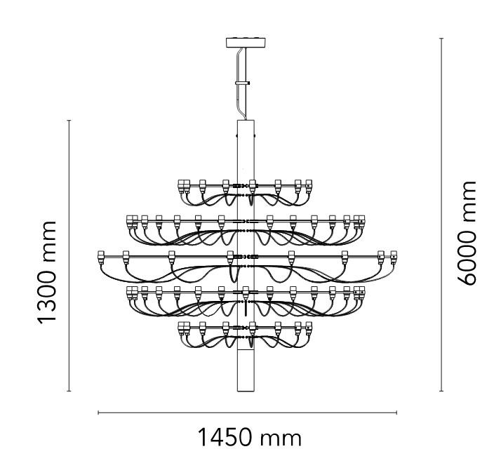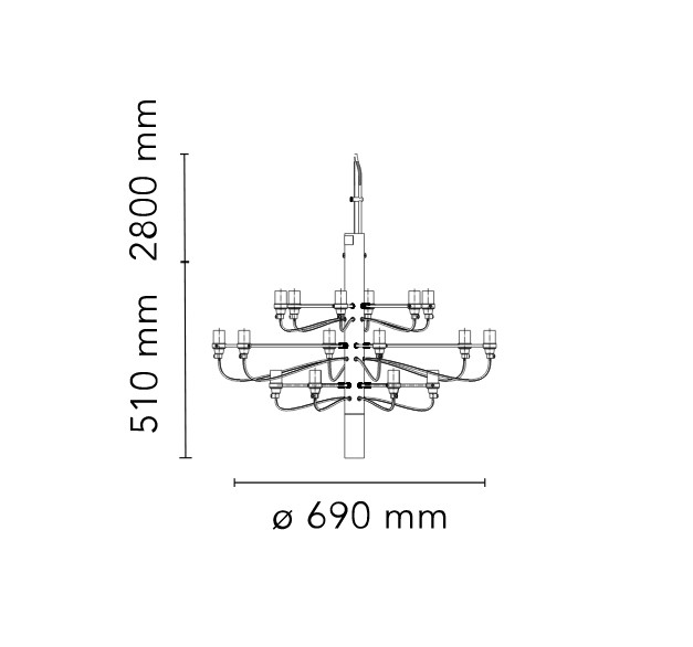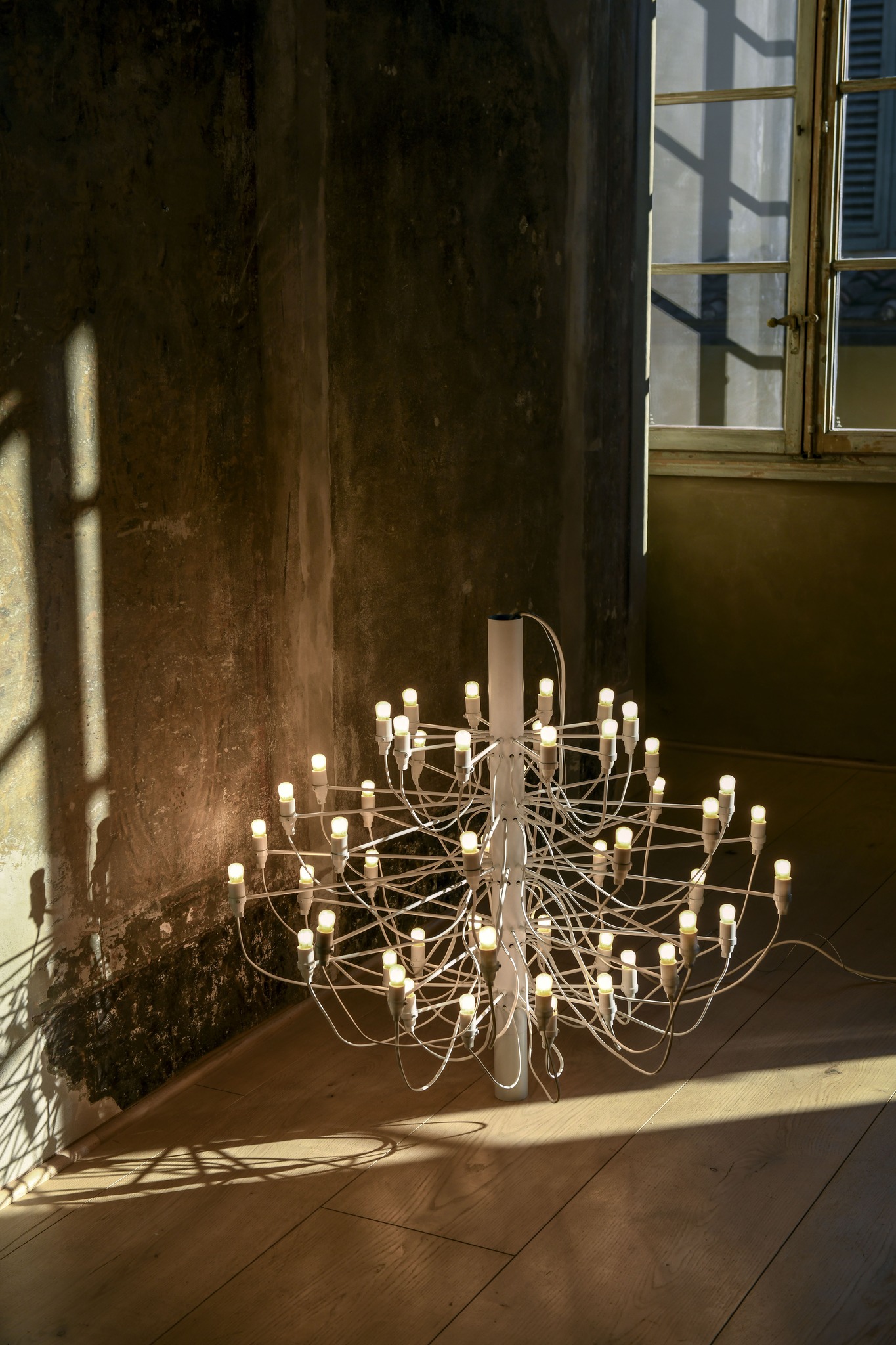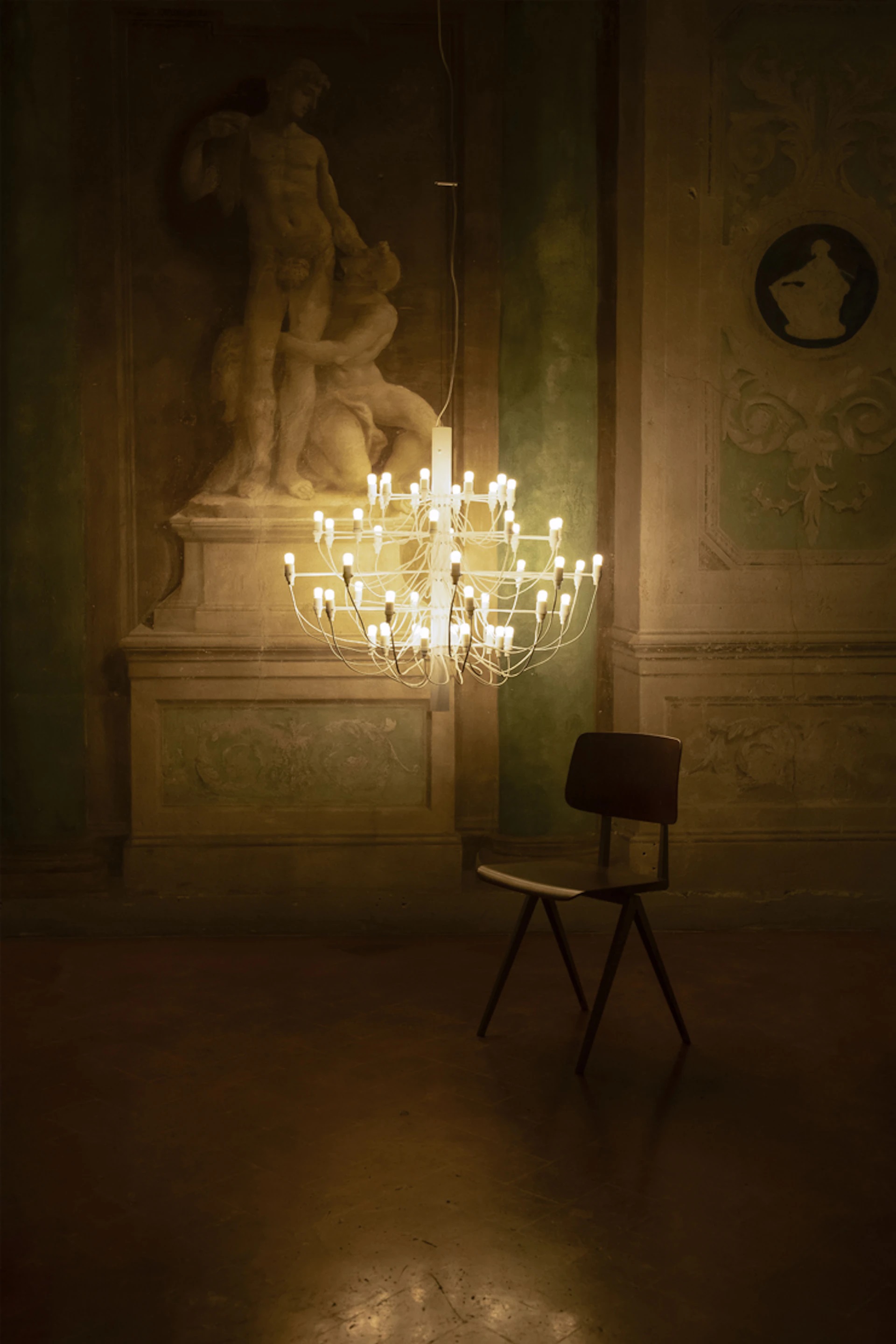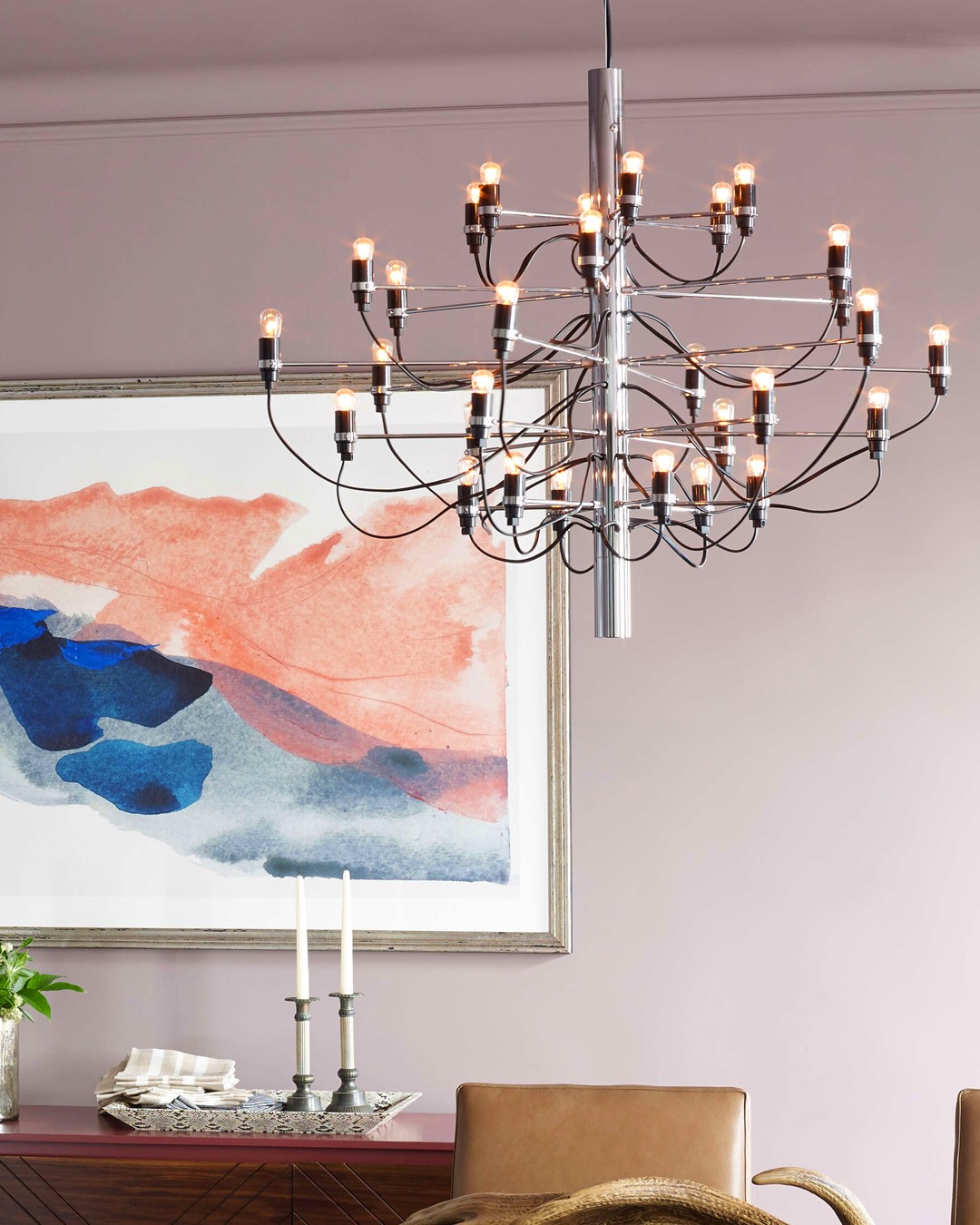 Από τον master του φωτισμού Gino Sarfatti, ένας σύγχρονος πολυέλαιος που συνδυάζει βιομηχανικά στοιχεία με μια θεατρικότητα και διάθεση του μέσου αιώνα. Με έναυσμα την κλασική αισθητική "Chandelier", ο Gino Sarfatti σχεδίασε τον εμβληματικό πολυέλαιο 2097 το 1958. Τόσο οι λαμπτήρες όσο και τα καλώδια είναι εμφανή, προκύπτοντας έτσι ένα μοντέρνο και μινιμαλιστικό σχήμα. Αρχικά ο πολυέλαιος 2097 δημιουργήθηκε με 18, 30 και 50 λαμπτήρες. Τώρα επεκτείνεται σε μια νέα σύνθεση 75 λαμπτήρων, μια επιβλητική φωτεινή παρουσία, ύμνος στον έξυπνο σχεδιασμό.
