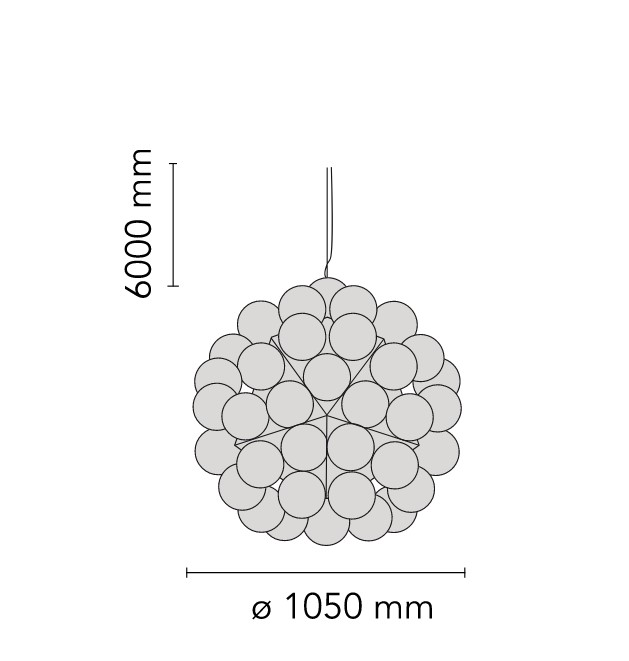 Στη κρεμαστή έκδοση, ο σκελετός του σχηματίζεται από 20 πρεσαριστά, γυαλισμένα τρίγωνα αλουμινίου που στεγάζουν 60, ή 120 στη μεγαλύτερη διάσταση, διαφανείς λαμπτήρες Globolux.