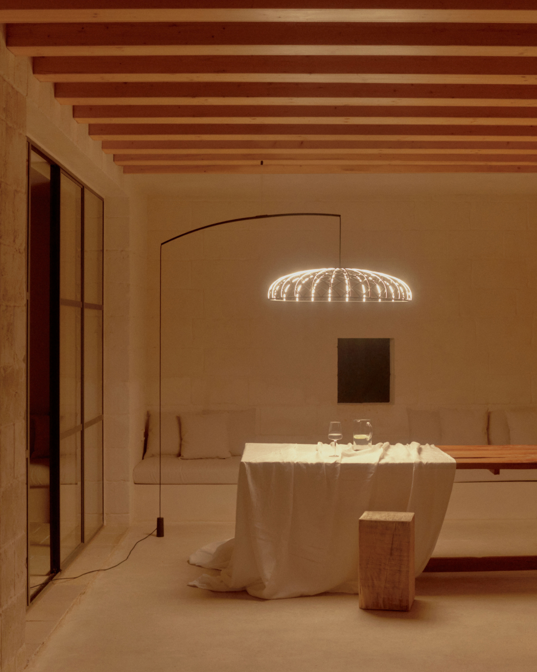 Η αυθάδης και ποιητική σχεδιαστική γλώσσα του Marcel Wanders βρίσκει μια νέα έκφραση στο Skynest, την τελευταία του δημιουργία για τη Flos. Ένας συνδυασμός επίσημης κομψότητας και τεχνικής καινοτομίας. Το Skynest διαθέτει μια καινοτόμο λωρίδα LED, πλεγμένη με υφασμάτινο καλώδιο για να δημιουργήσει ένα σχήμα σαν καλάθι. Μια αιθέρια, ανάλαφρη παρουσία, σαφώς εμπνευσμένη από τον κόσμο της χειροτεχνίας αλλά με απροσδόκητη τεχνολογία.