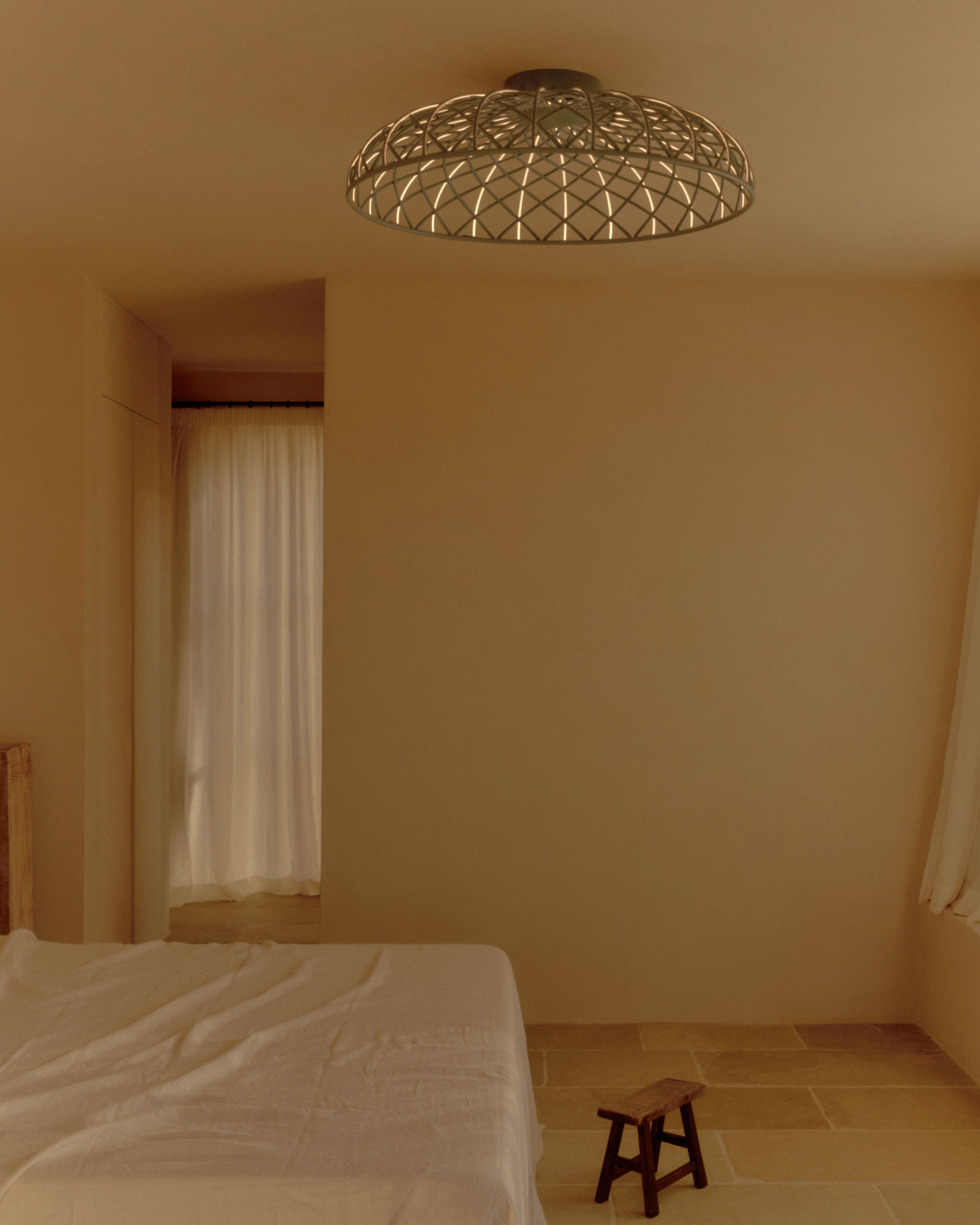 Η αυθάδης και ποιητική σχεδιαστική γλώσσα του Marcel Wanders βρίσκει μια νέα έκφραση στο Skynest, την τελευταία του δημιουργία για τη Flos. Ένας συνδυασμός επίσημης κομψότητας και τεχνικής καινοτομίας. Το Skynest διαθέτει μια καινοτόμο λωρίδα LED, πλεγμένη με υφασμάτινο καλώδιο για να δημιουργήσει ένα σχήμα σαν καλάθι. Μια αιθέρια, ανάλαφρη παρουσία, σαφώς εμπνευσμένη από τον κόσμο της χειροτεχνίας αλλά με απροσδόκητη τεχνολογία.