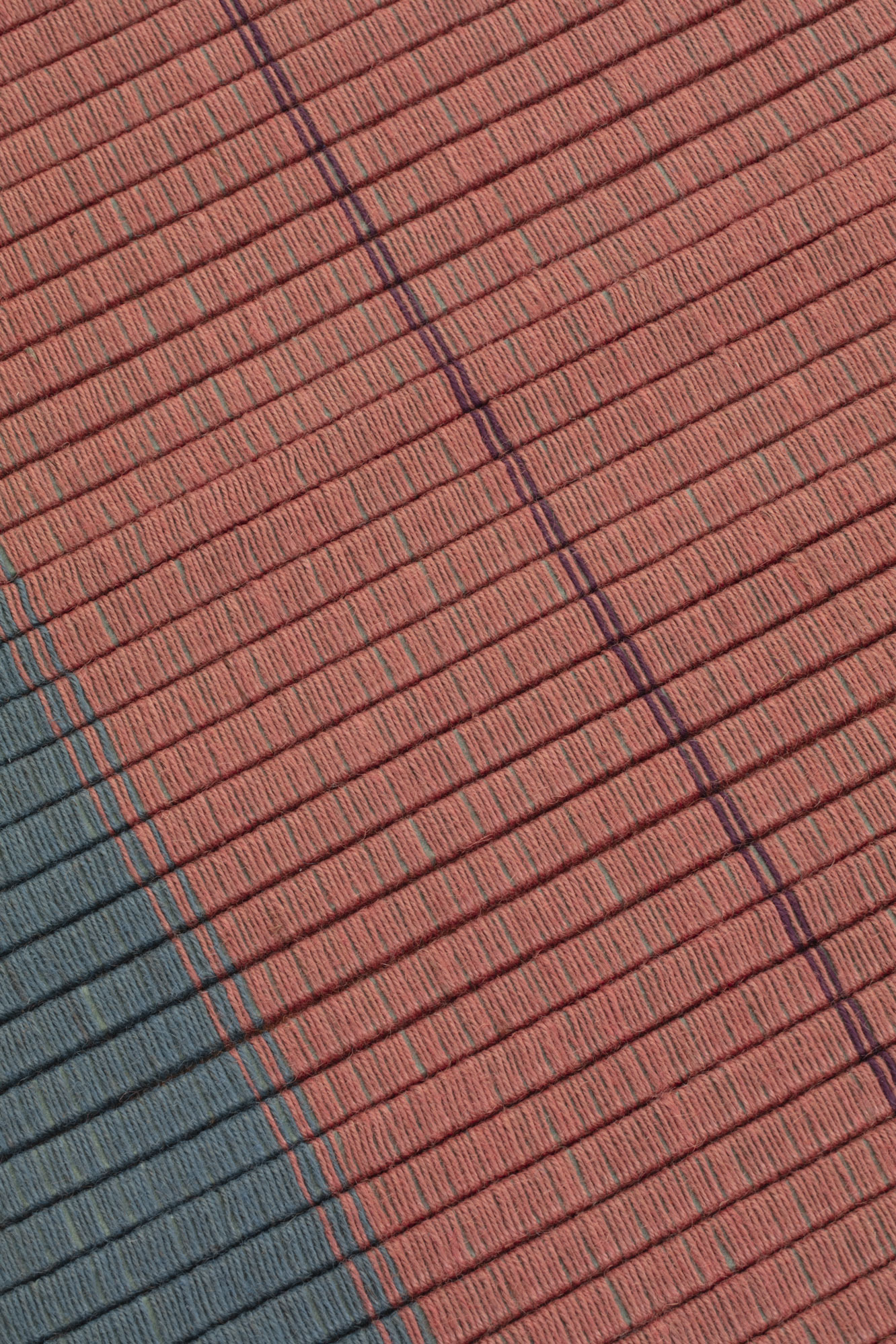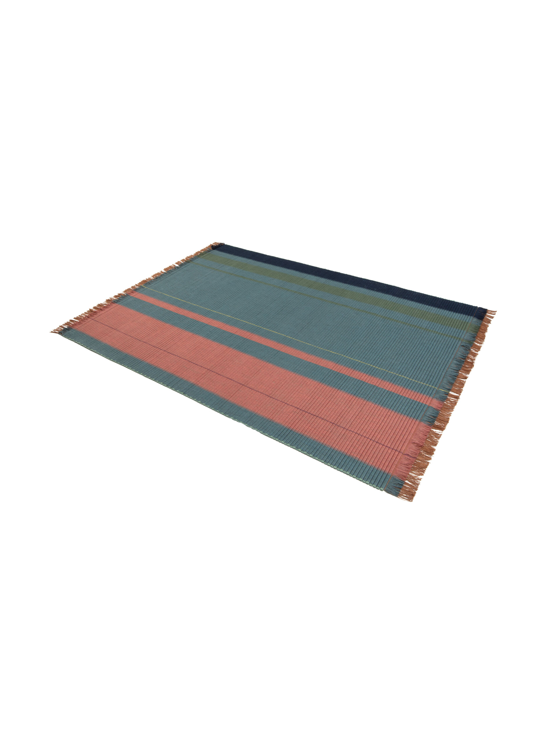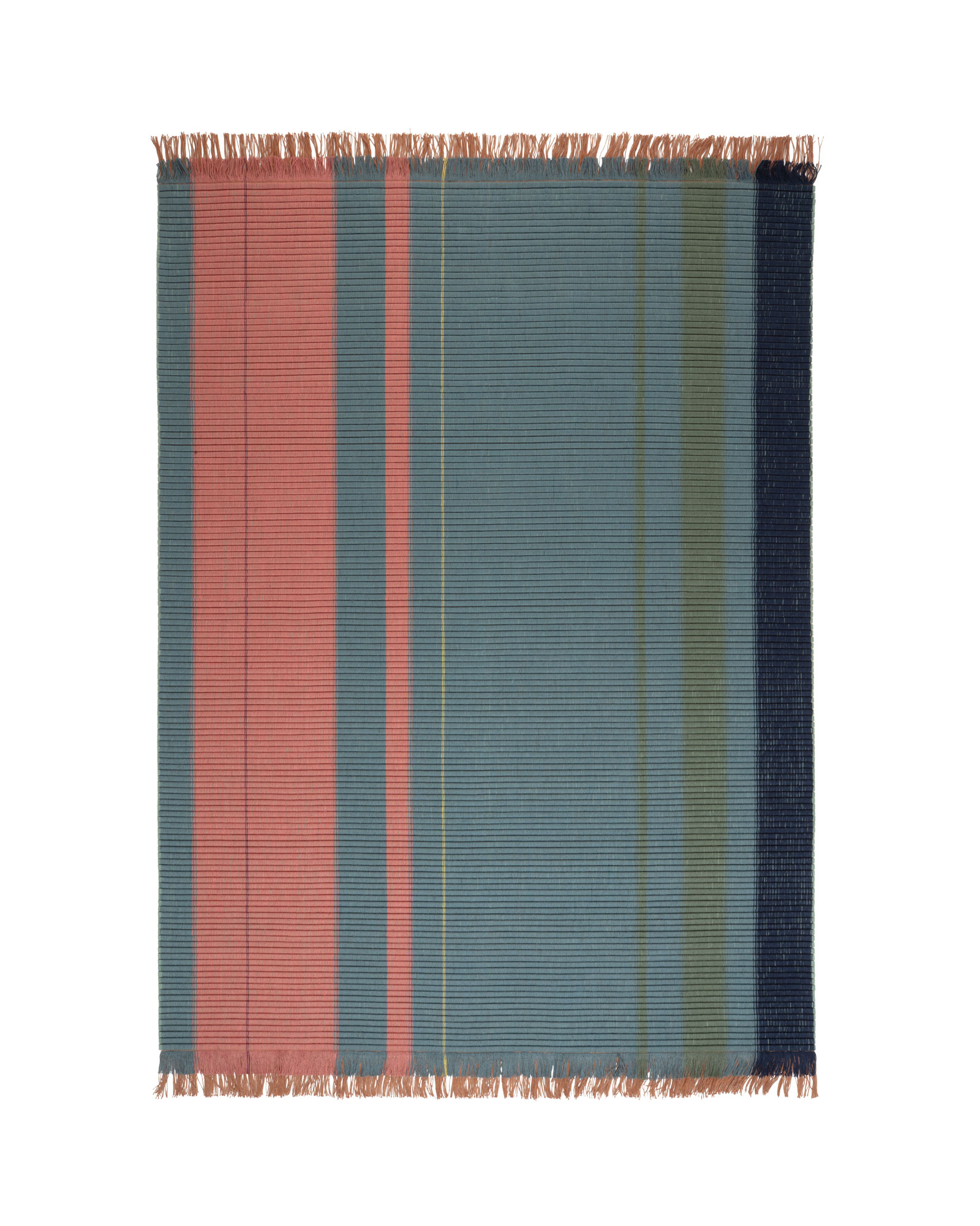 Σχεδιασμένη από την Mae Engelgeer, η συλλογή Omote διερευνά τη μινιμαλιστική δομή του παραδοσιακού ιαπωνικού χαλιού tatami, πειραματιζόμενη με την μέθοδο του αργαλειού. Φυσικά νήματα υφαίνονται γύρω από τη ζεστή και μονωτική τσόχα, αναδημιουργώντας την ελαστικότητα και την απαλότητα του χαλιού τατάμι.