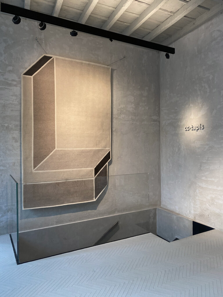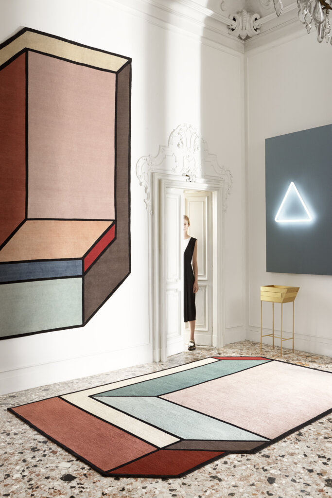 Μια άνευ προηγουμένου σύνθεση μεταξύ μιας παλιάς τεχνικής και αφηρημένων γραφικών. Τα δύο χαλιά έχουν παραχθεί αποκλειστικά με το χέρι με χρώματα και υλικά που μαρτυρούν την επιθυμία να δώσουν αξία στις αρχαίες τεχνικές παραγωγής προσθέτοντας μια σύγχρονη πνοή σε αυτά.