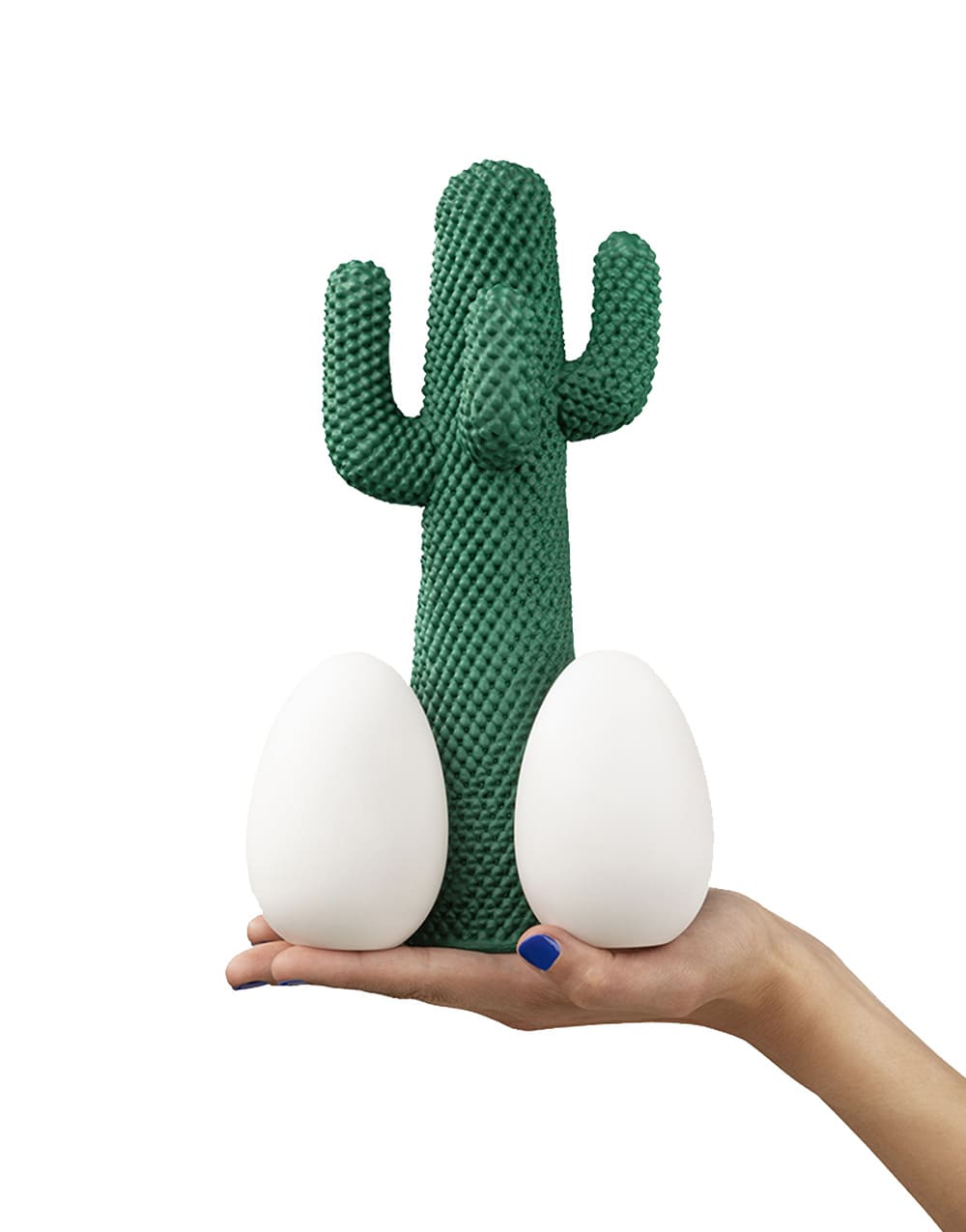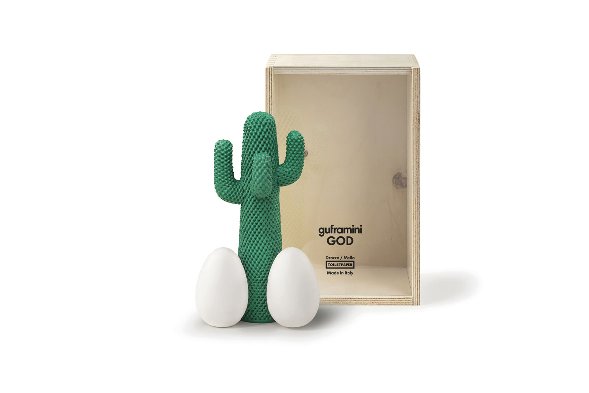 Το Guframini GOD προστίθεται στην εμβληματική συλλογή του mini CACTUS®. Αυτή η συναρπαστική ένωση μεταξύ του Cactus και των αυγών της LA COVA είναι ένας ύμνος σε μια από τις πιο σημαντικές συνεργασίες της Gufram με τους TOILETPAPER.